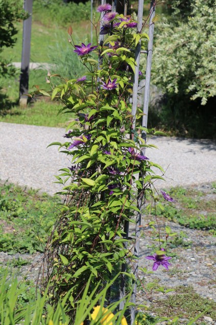 We’ve had a mix of blue skies and rain showers for the beginning of summer. It has been a banner year for our clematis varieties.