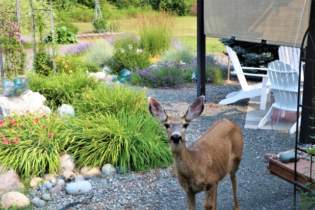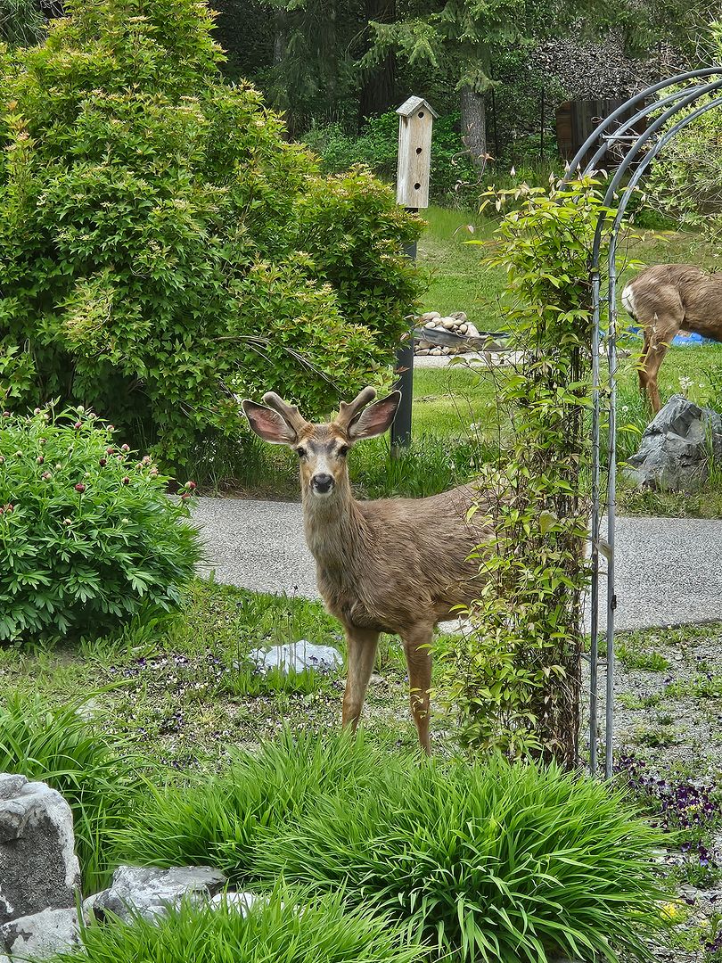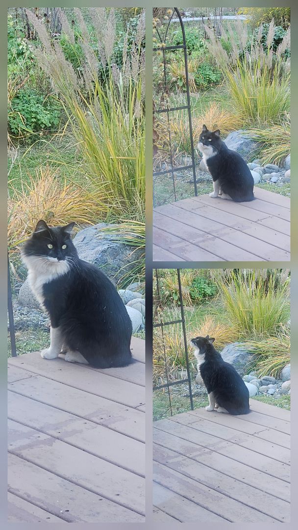 A neighborhood cat without a tail visited while our grandson JJ was here on Monday afternoon. This was the friendliest cat that has ever visited our yard.