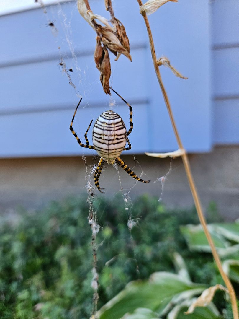 On Tuesday while I pulled some weeds I noticed this garden spider. Yikes!