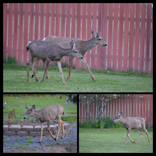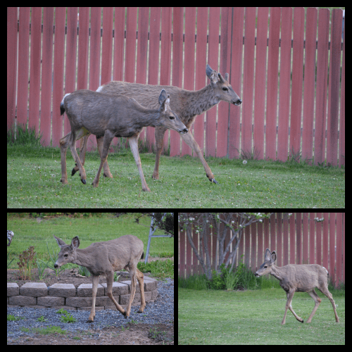 The deer are coming around again to nibble and rest in the shade in our back yard. They are welcome as long as they stay away from my clematis.