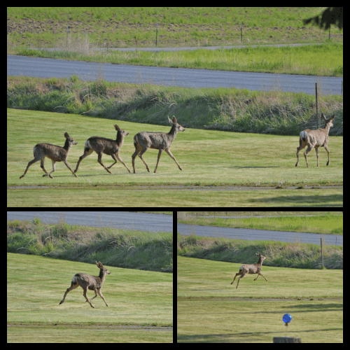 It’s been a while since we have seen any deer in our back area so we were surprised to see several show up last week. We weren’t excited to see them go after all the new Spring growth.