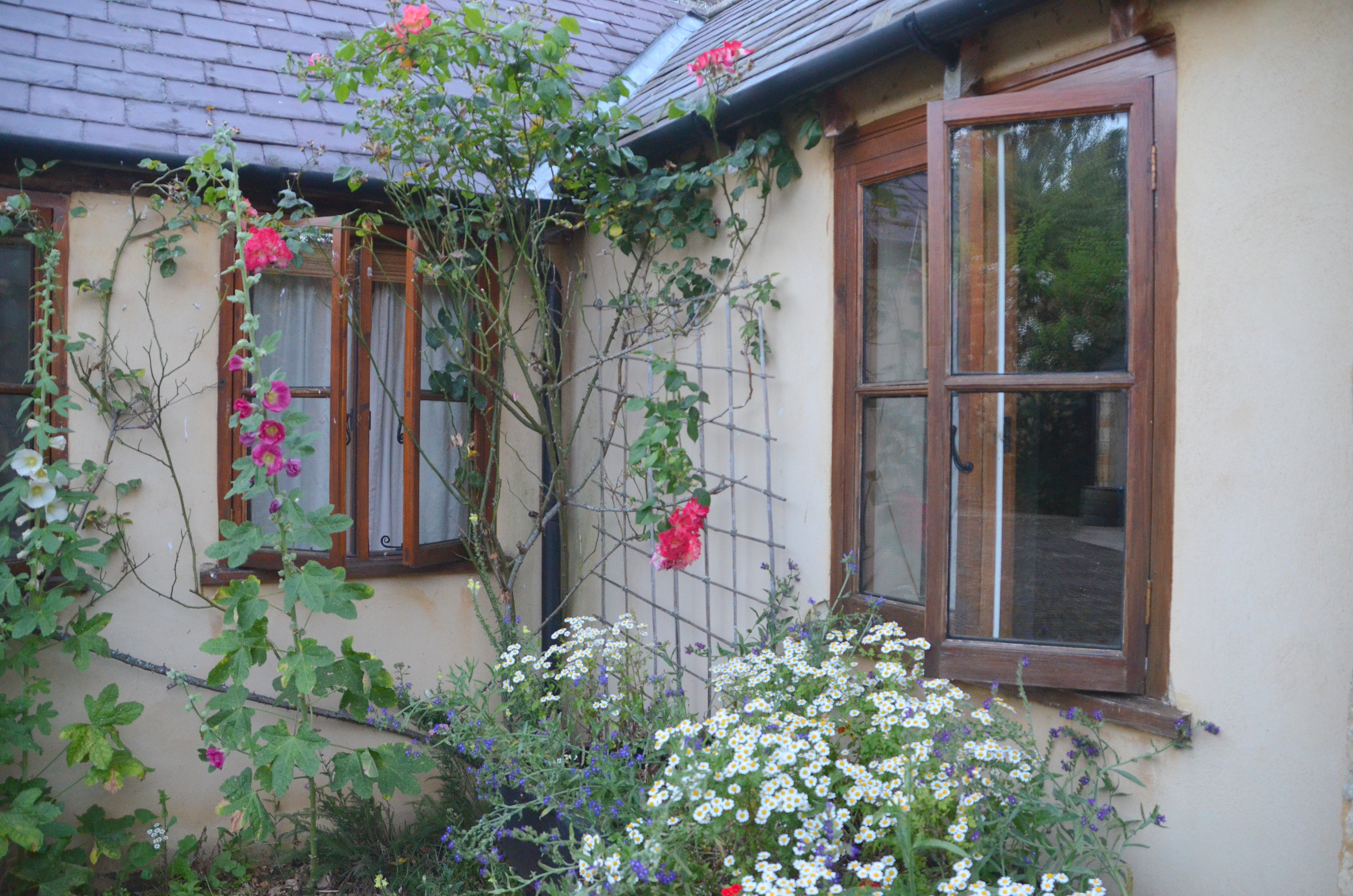 Visitors 002The owners of the farm and cottage live in the house you see next to the owl and behind this view of the cottage.