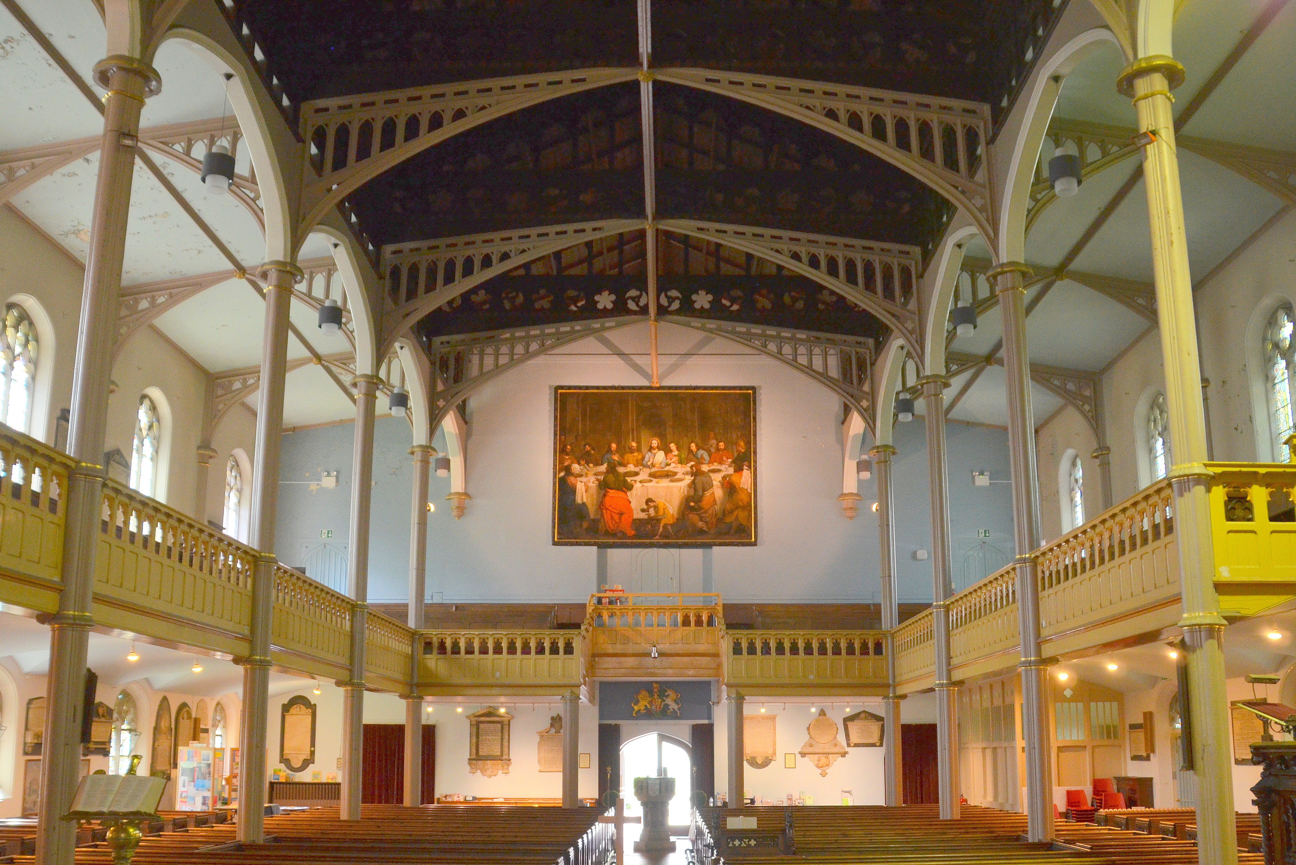 The Thames 104 - Copy - CopyFrom the Lectern, look down the centre aisle and observe in the West Gallery a painting of The Last Supper. This is a national treasure. The picture was originally presented to the Royal Chapel c. 1660 by Brian Duppa, Bishop of Winchester, Prelate of the Order of the Garter. It was “bought by him beyond the sea”. Another tradition ascribes it to Franz de Cleyn (1588-1658), Rostock, Mecklenburg, Court painter to James I. It was rolled up and buried “in the plumery” (plumbers workshop?) in the Great Rebellion. It hung over the altar at St George’s, Windsor in 1702, and can be seen there in Sandby’s drawing dated 1786.