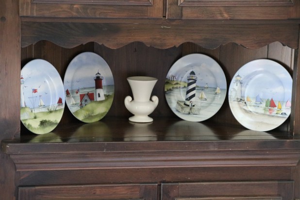 Time for the summer scenes to be replaced with autumn. I’ll be on the search through my plates to see if I have fall flavored plates for this section of our corner cabinet.