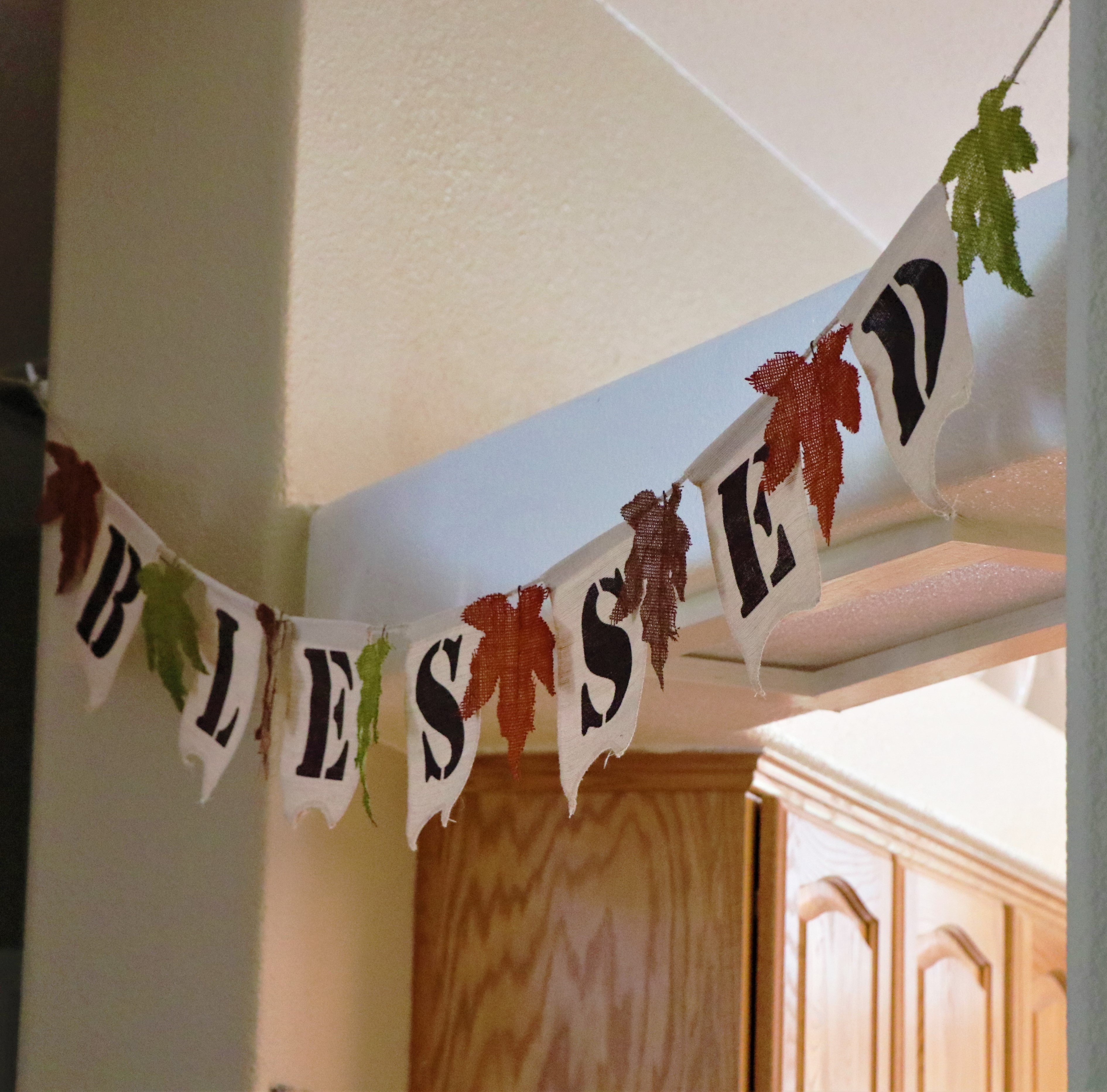 This banner that says BLESSED was plain and I bought the package of leaves to add to it.
