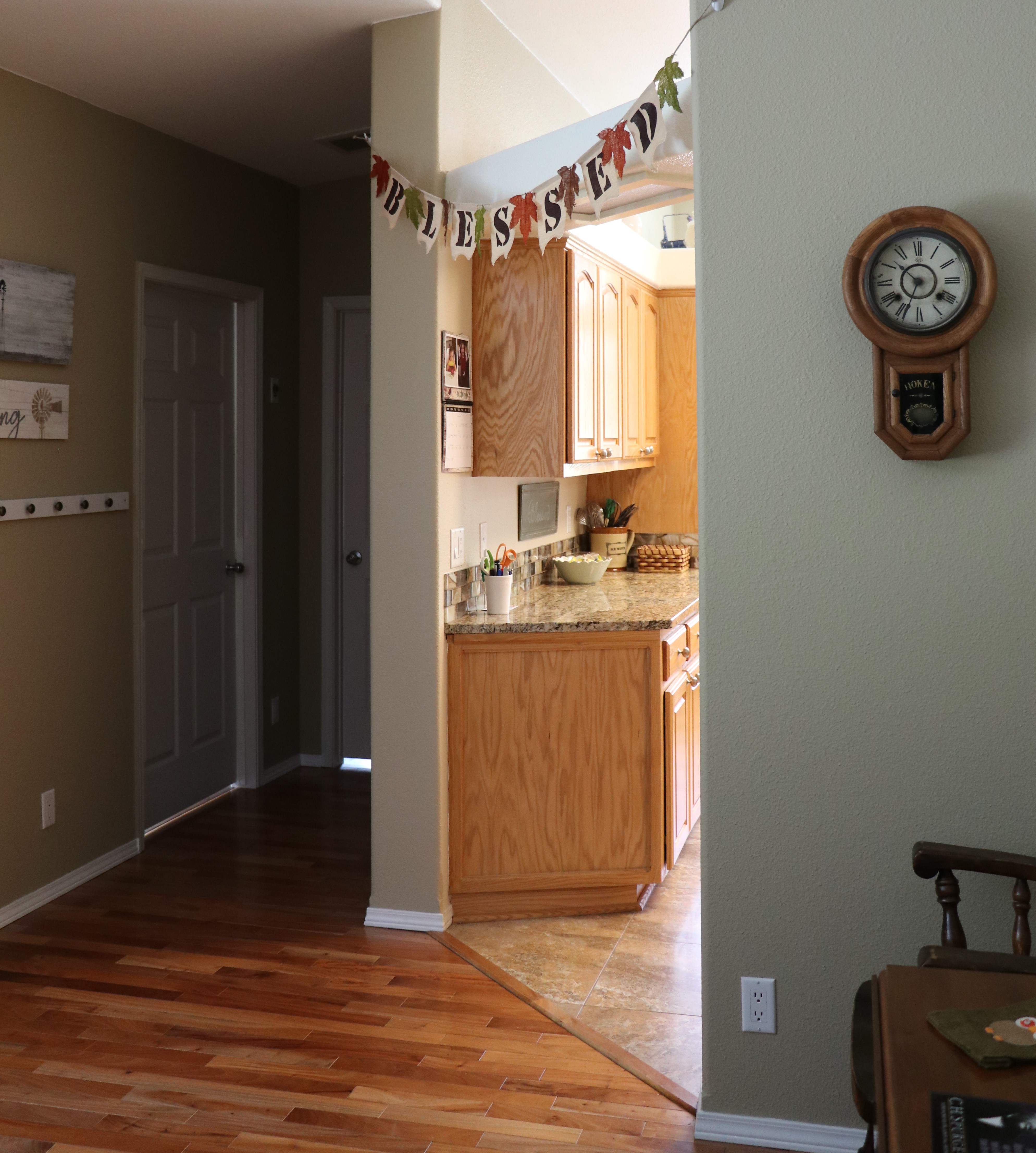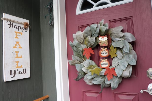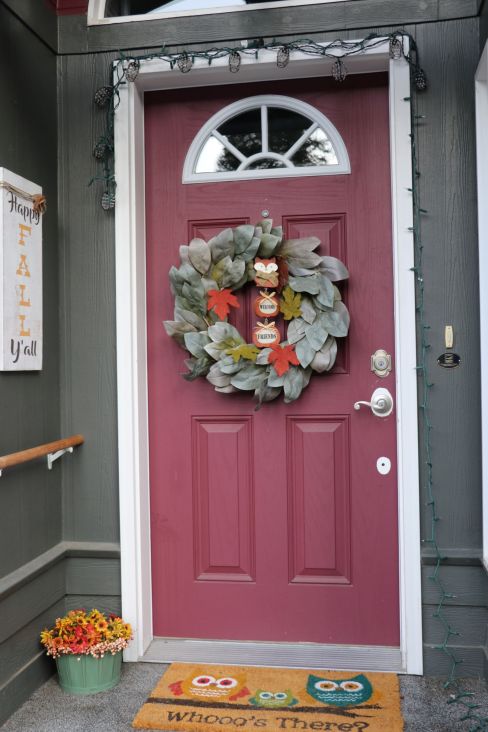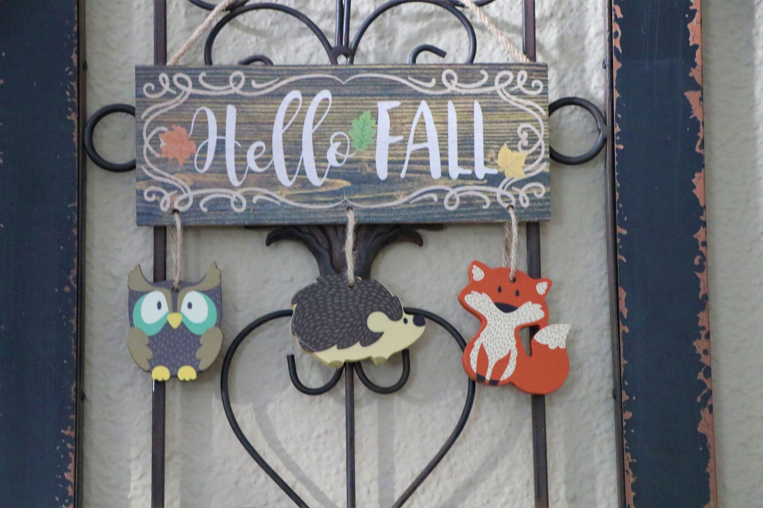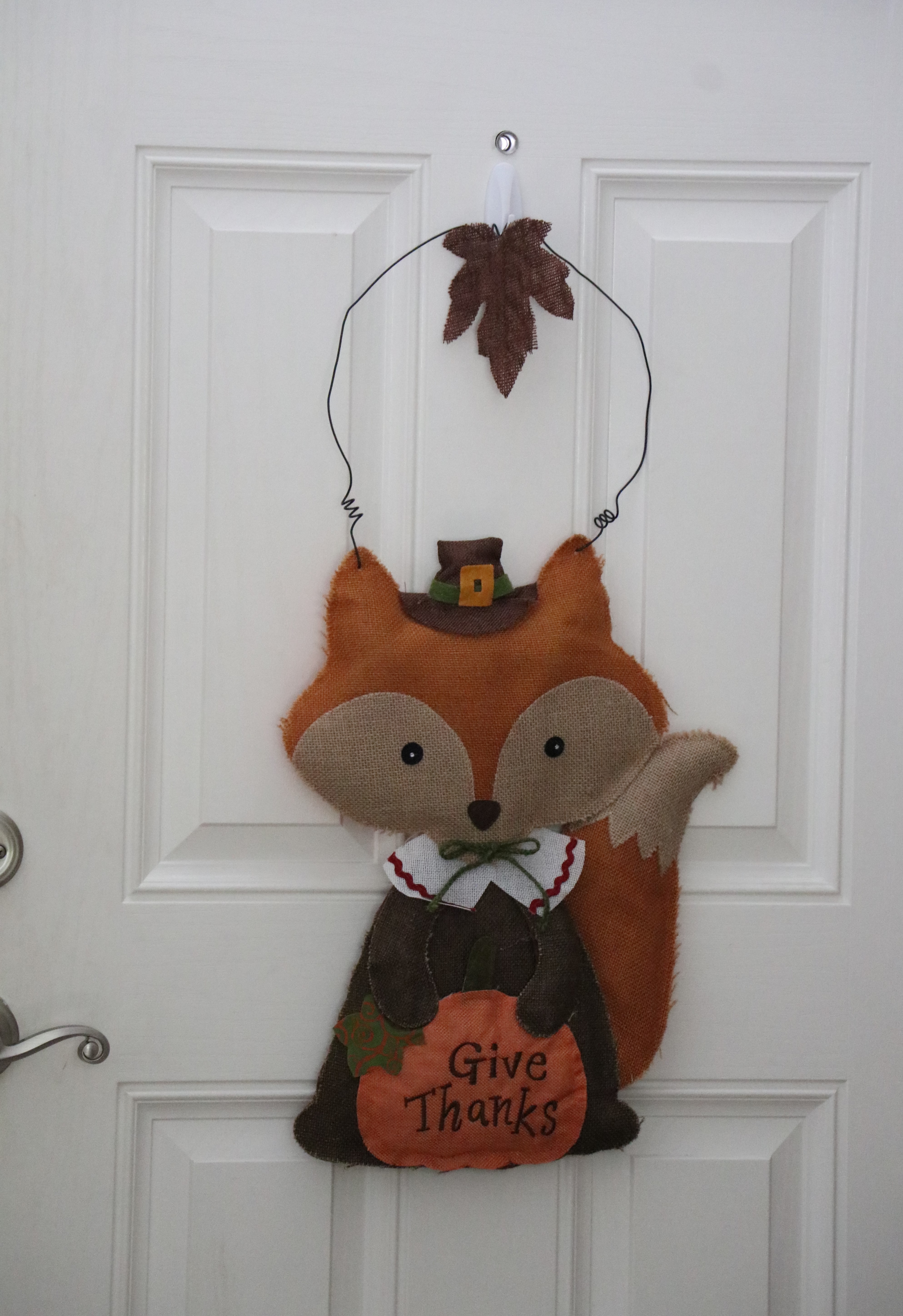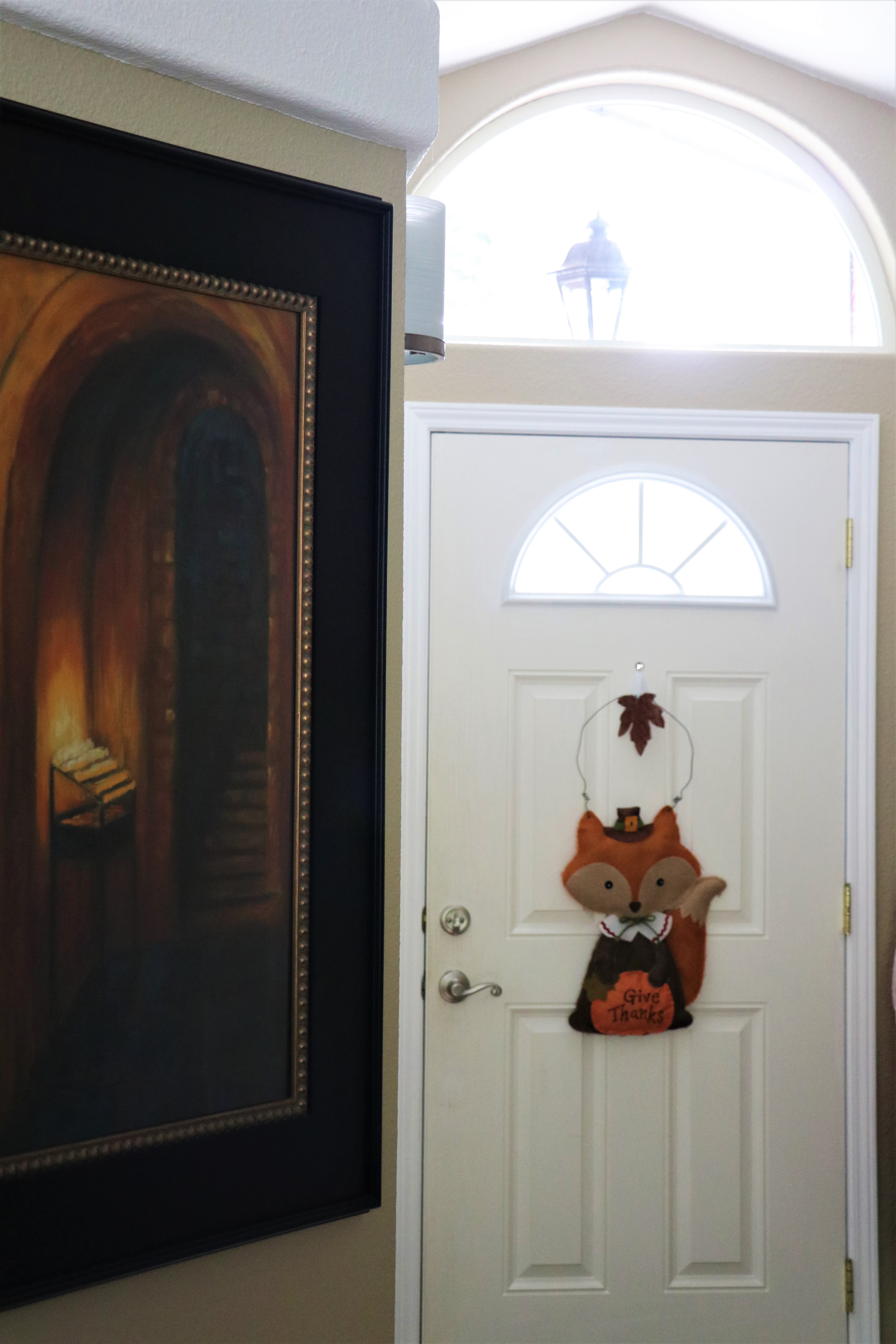 When we were in Spokane last week I picked up a couple new fall accents at Hobby Lobby for our bungalow and instead of packing them away until September 23rd I found good spots for them right now. This fox called to me and I thought the grands would enjoy him, too. He’s soft so when the door opens and shuts it’s not a problem.