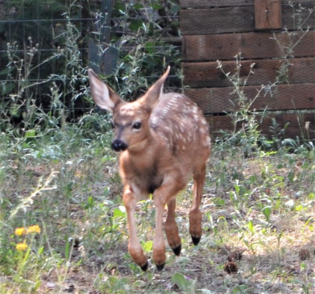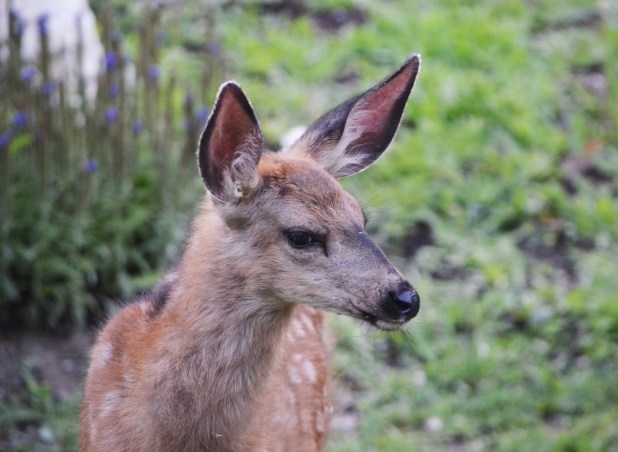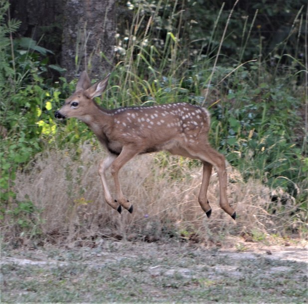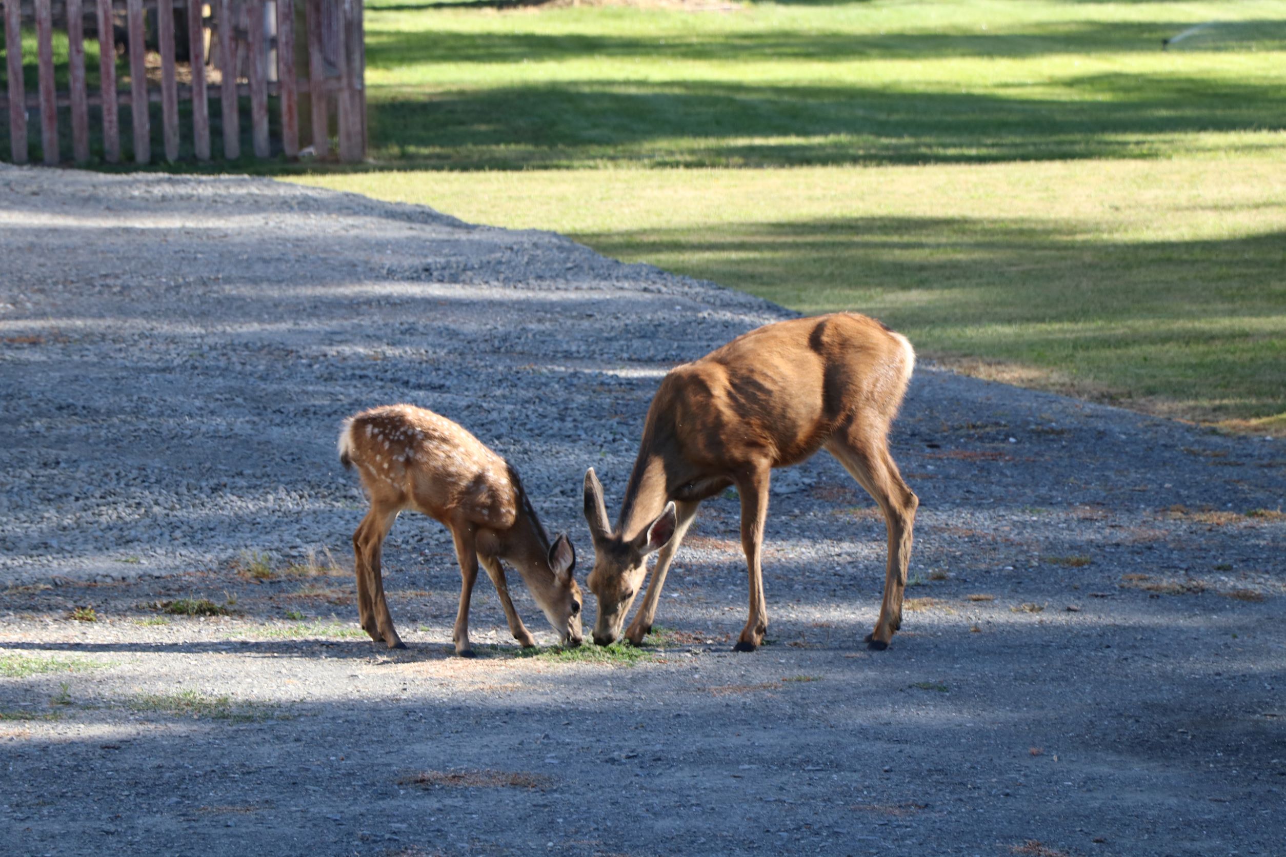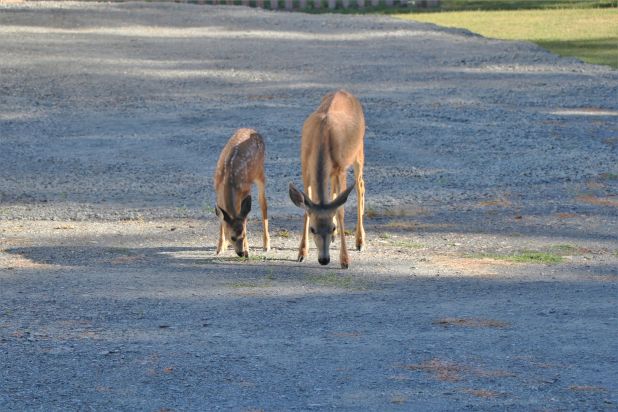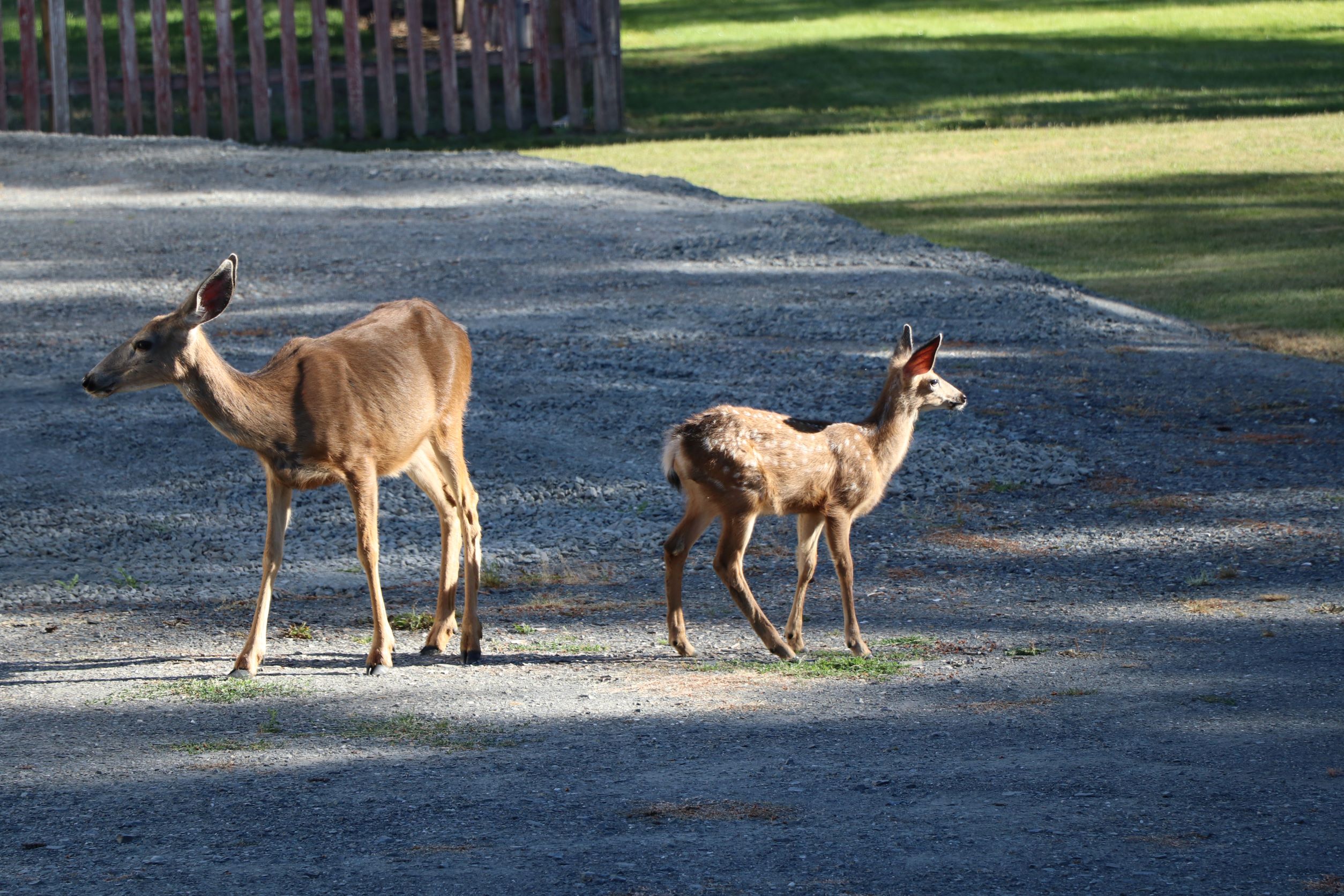 This mama deer comes to forage in our yard but leaves her fawn in a neighboring area to our property.