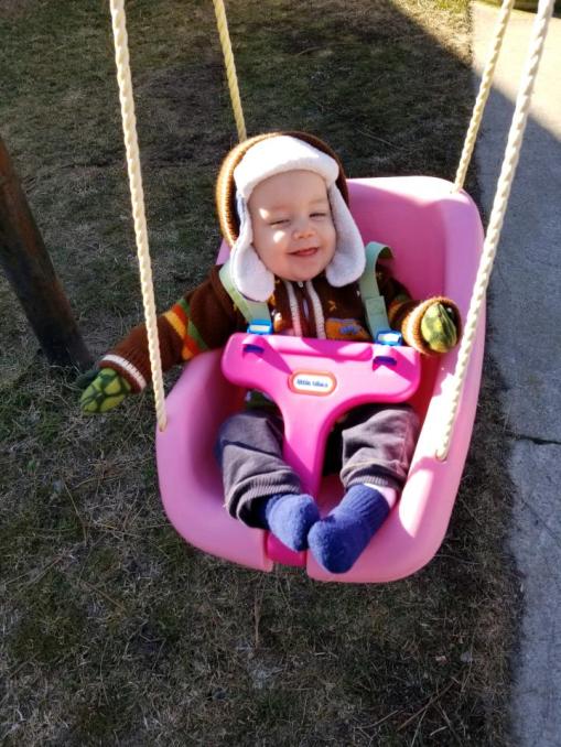Time for swinging while the sun was still shining. What a sweet older sister to give her brother some pushes on the swing.