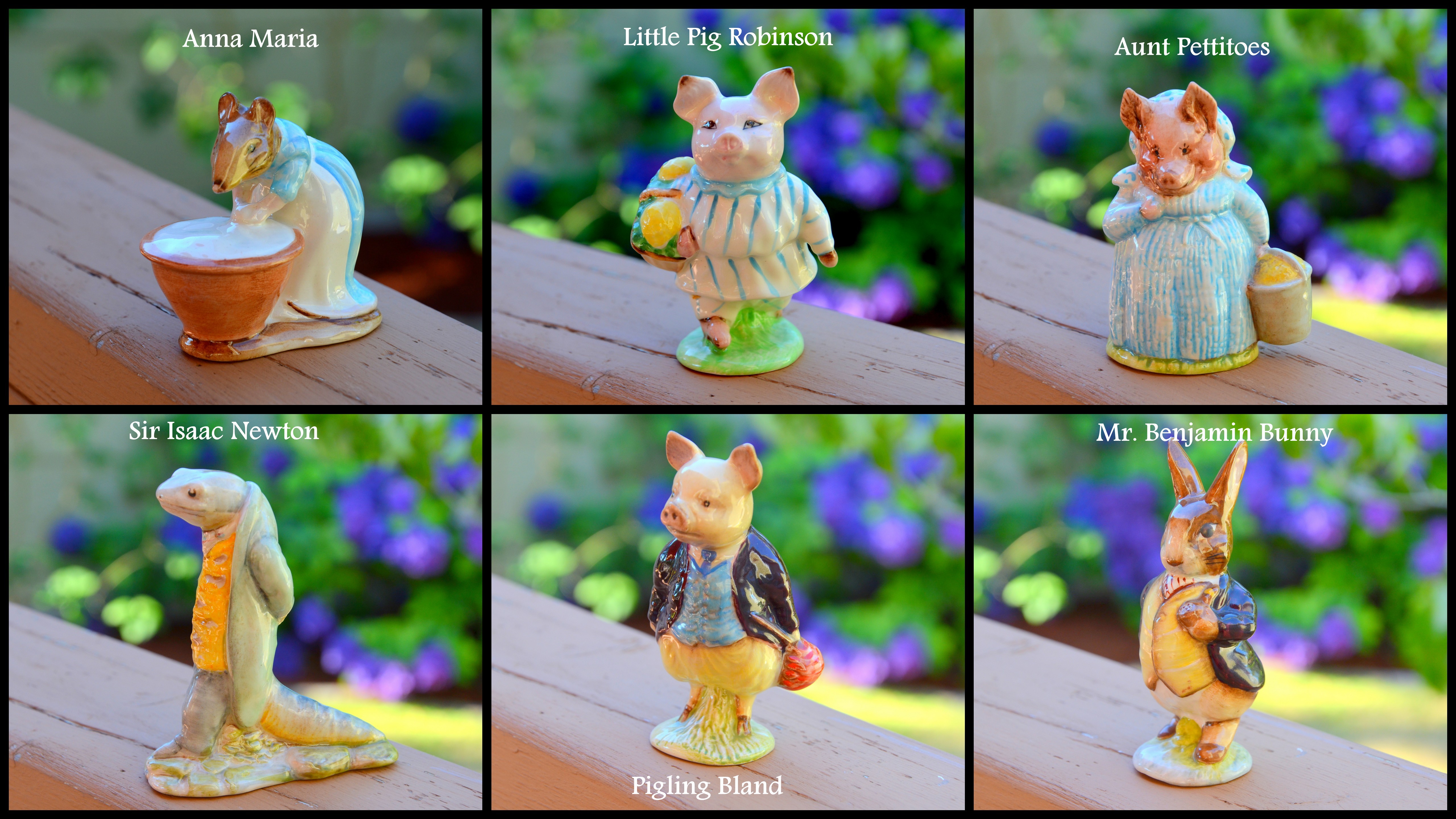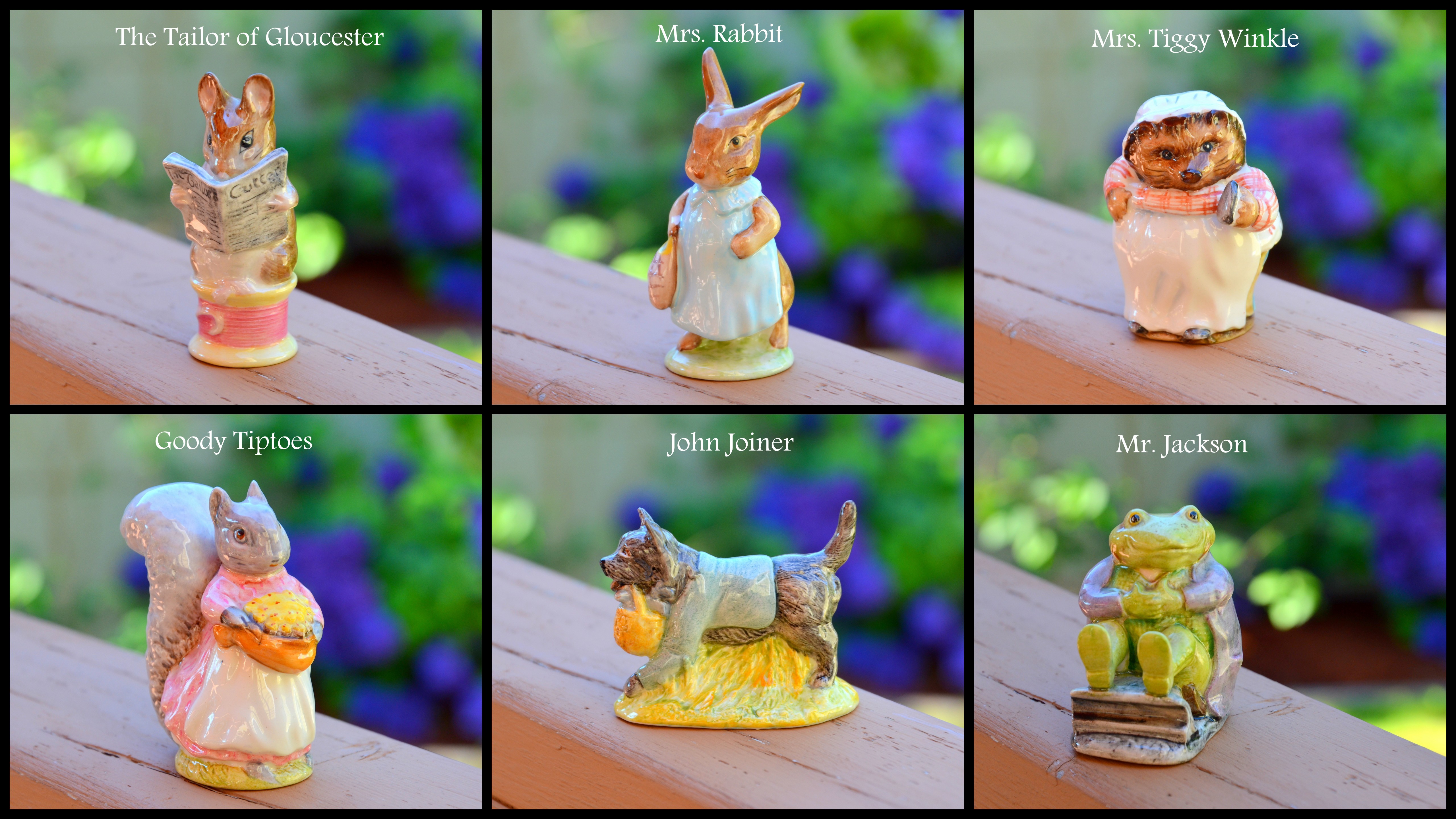 Here is my collection of Beatrix Potter figurines to date in the following collages…