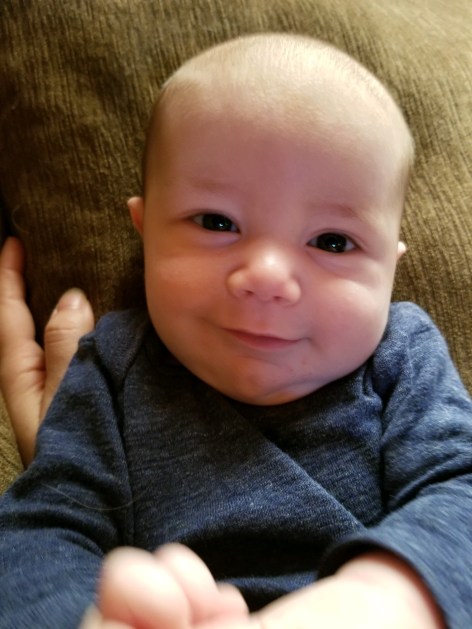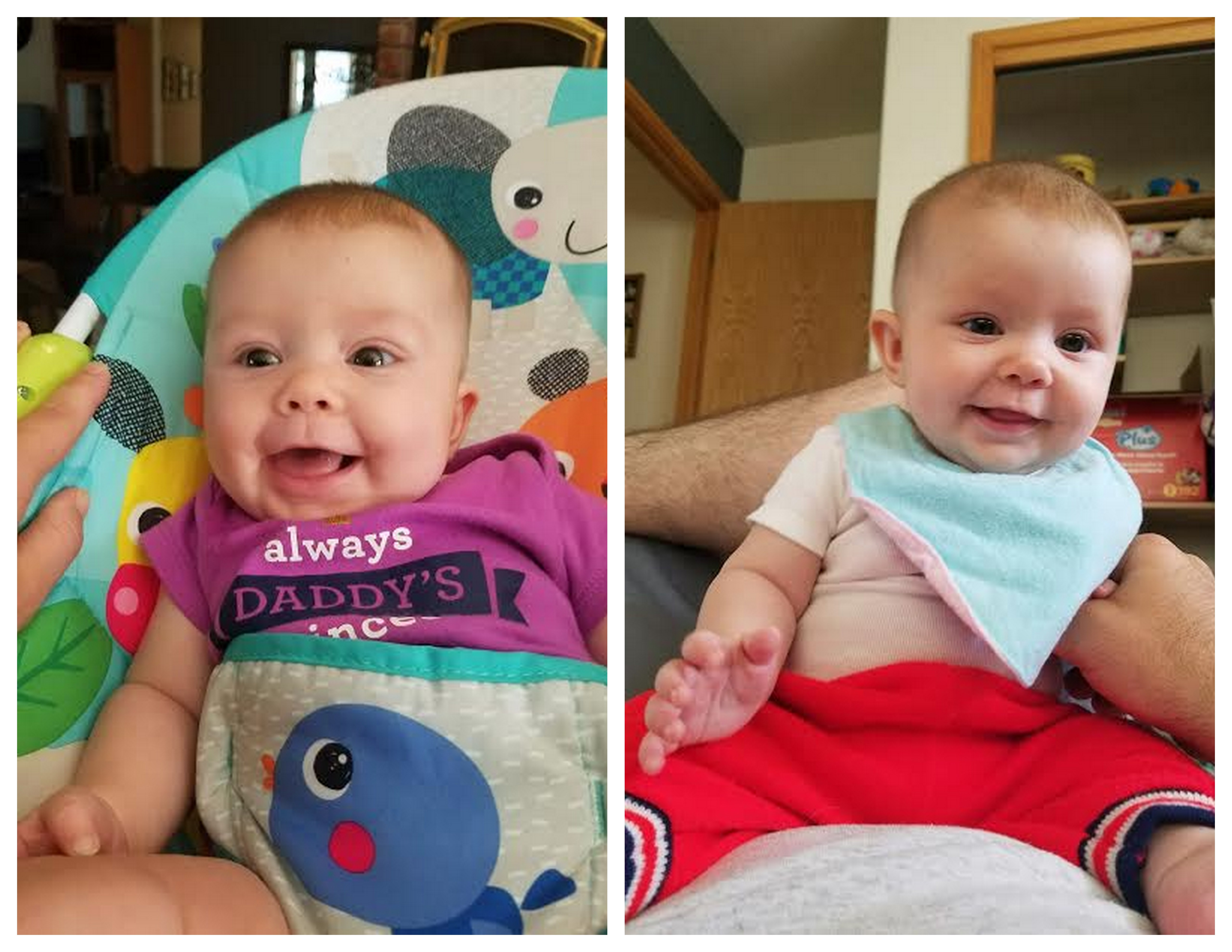 Can’t get enough of this little smiley face! She has rolled over from her tummy to her back and now she just rolled over from her back to her tummy! She will be 4 months on July 20th!
