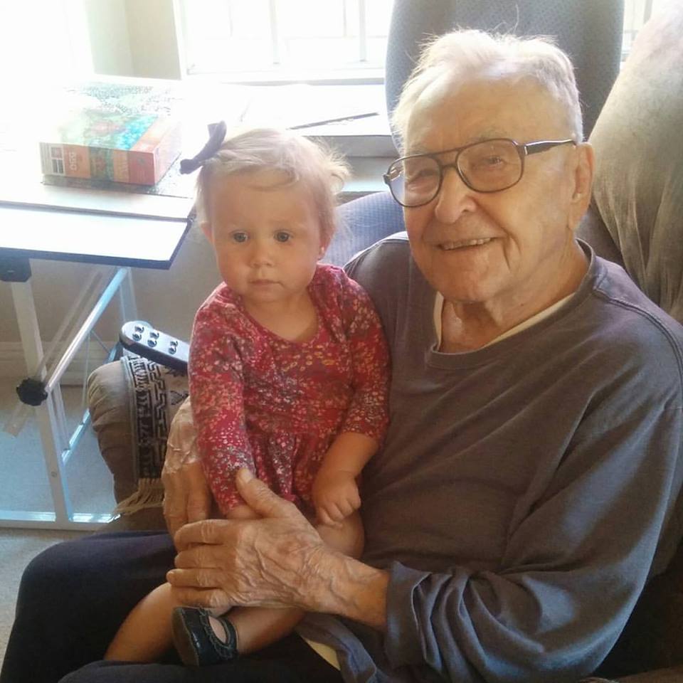 On the Monday after Super Bowl Sunday we traveled inland from Huntington Beach to see my pop. This would be the first time Pop would meet Addy, his youngest great granddaughter. Addy was very concerned about our pop who is not looking well. She had quite a grip on her daddy’s t-shirt.