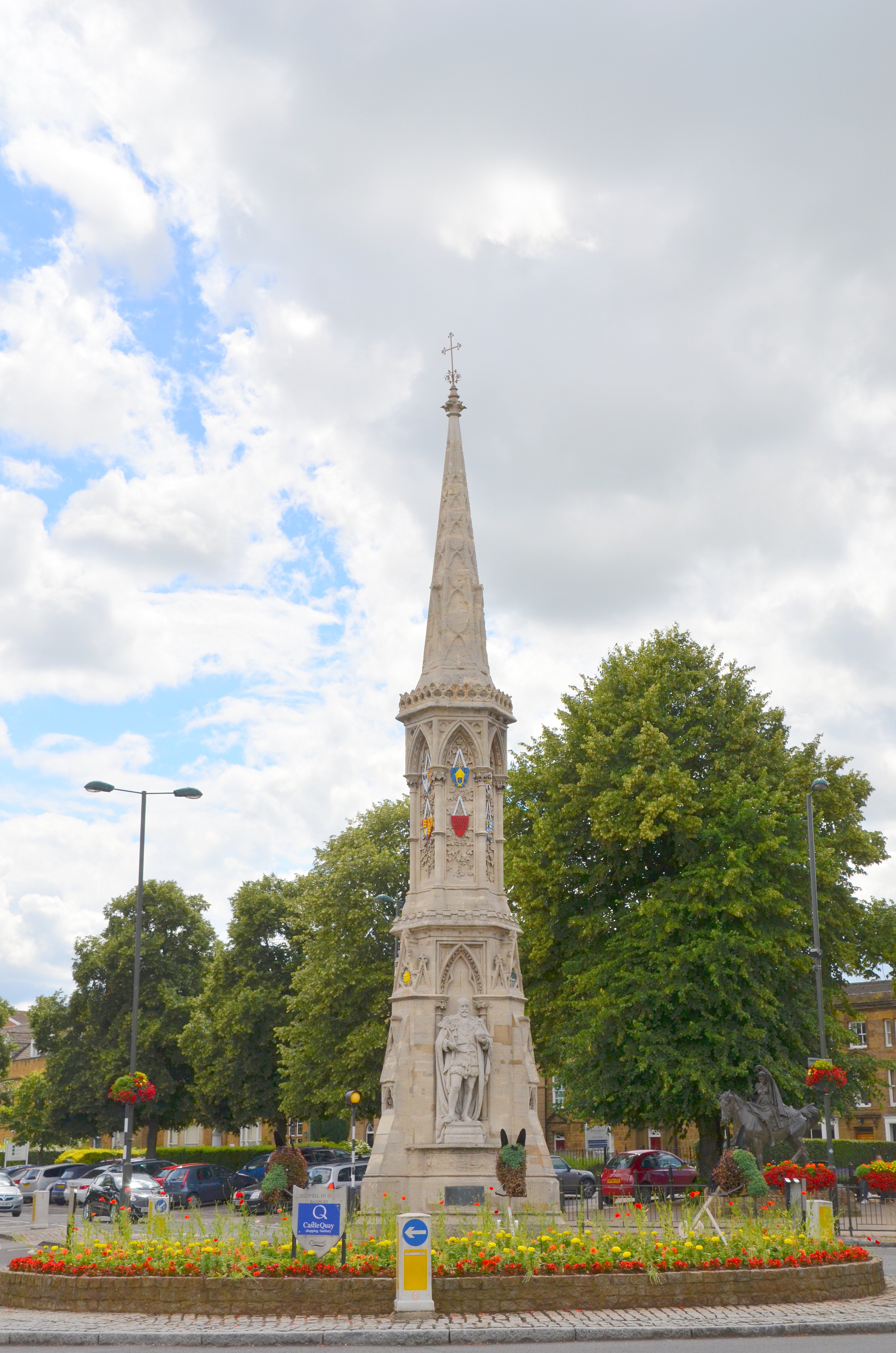 Sunday-Banbury 024Nowadays the only cross gracing Banbury lies at the intersection of four major roads – those to Oxford, Warwick, Shipston-on-Stour and the High Street, which leads to the shopping area and the old heart of the town. It was erected in 1859 to commemorate the marriage of Queen Victoria’s eldest daughter Victoria Adelaide Mary Louisa to Friedrich Wilhelm of Prussia on 25th January 1858. It stands 52feet 6inches high to the top of its gilt cross and is of a neo-Gothic design. Originally six niches for statues were planned, but this was later reduced to three.