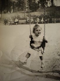 (This is a photo of my sister Kathy in a park in Los Angeles, California. Love how the older folk sitting on the benches in the background all have hats on.)