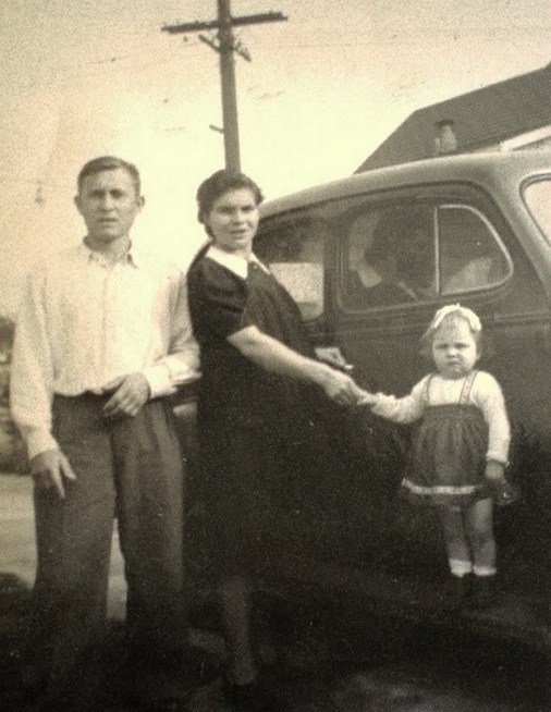 (This photo is taken after my parents and sister Kathy settled in Los Angeles. This was sometime in late 1947 or early 1948. My mom is pregnant with my sister Vera in this photo and Vera was born in February of 1948.)