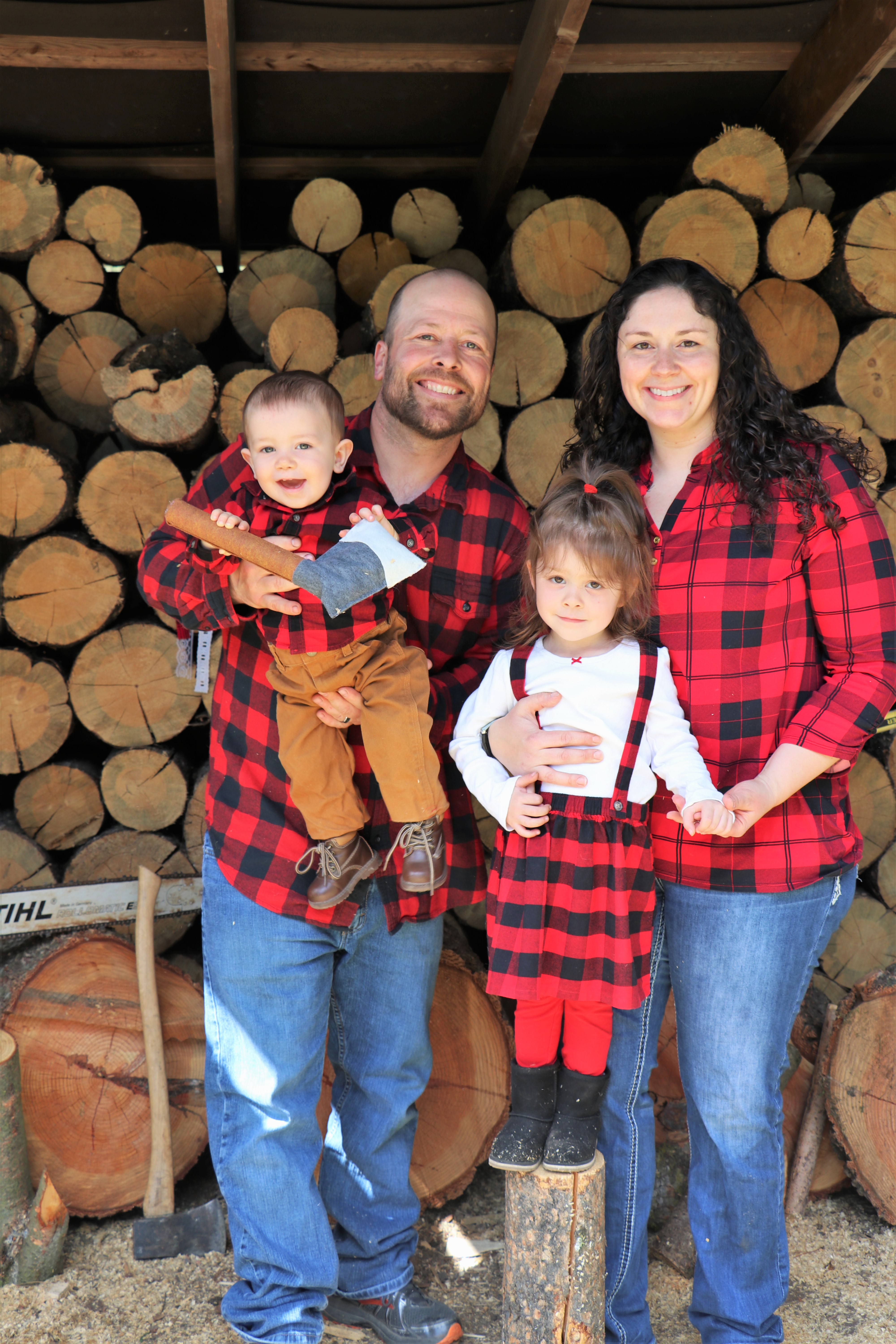 Hats off to our daughter-in-law for the props, the beards, felt ax rattle, the one sign and to our son for staging his wood pile with the axes and sawdust!
