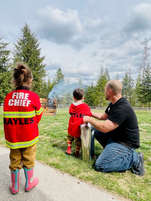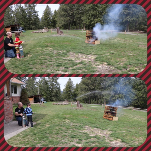 The Fire Chief supervised as Fireman #3 helped to put out the fire!