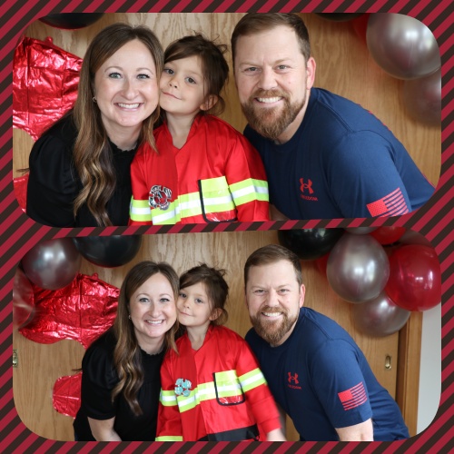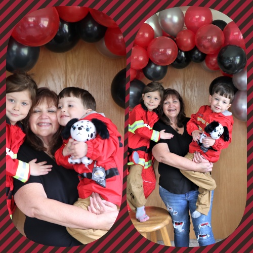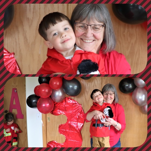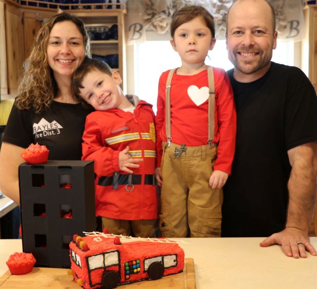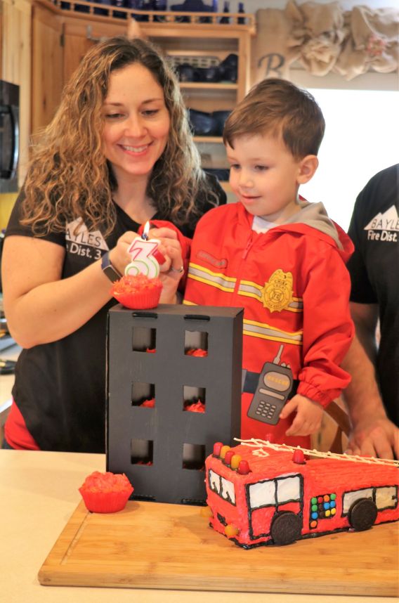 Fireman JJ was relieved of duty while the Fire Chief took over and was helped by other guests at the party.