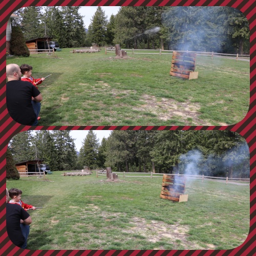 We had our lunch of brats, hot dogs, coleslaw, potato salad and other goodies. We cleaned up after lunch and then we were all surprised to hear the fire alarm go off. The fire chief and fireman pulled on their boots and headed outside to see what the alarm was all about. Sure enough there was a fire that needed to be put out!