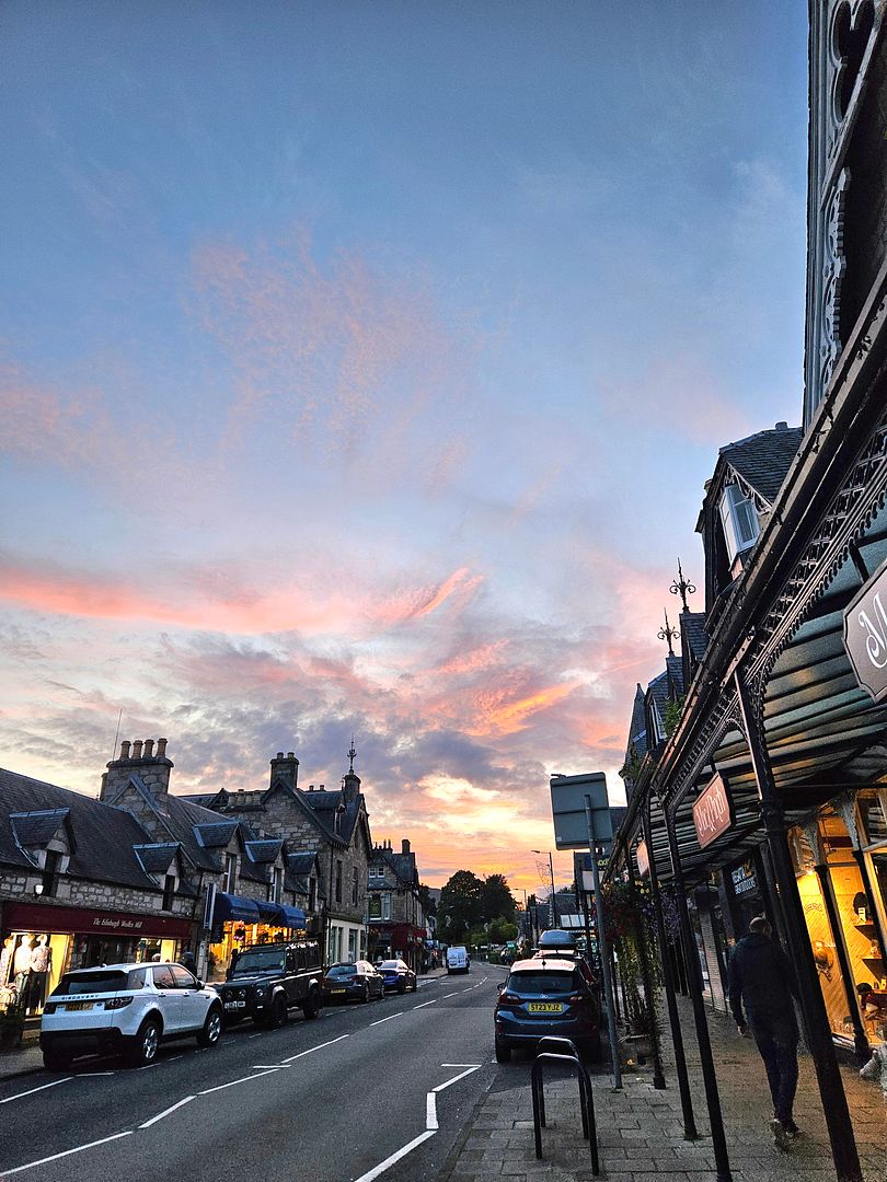 Our after dinner sunset walk to the hotel along the main road through Pitlochry was lovely.