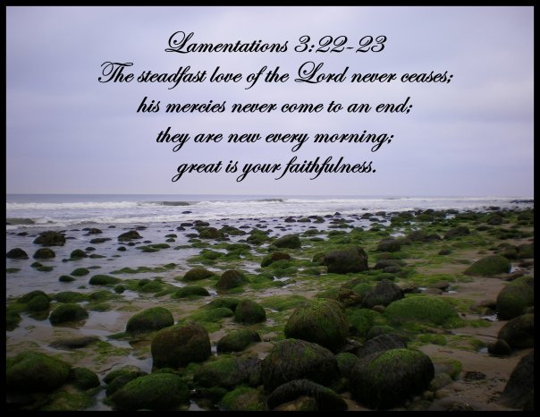 “The Lord’s lovingkindnesses indeed never cease, For His compassions never fail. They are new every morning; Great is Your faithfulness.” Lamentations 3:22-23