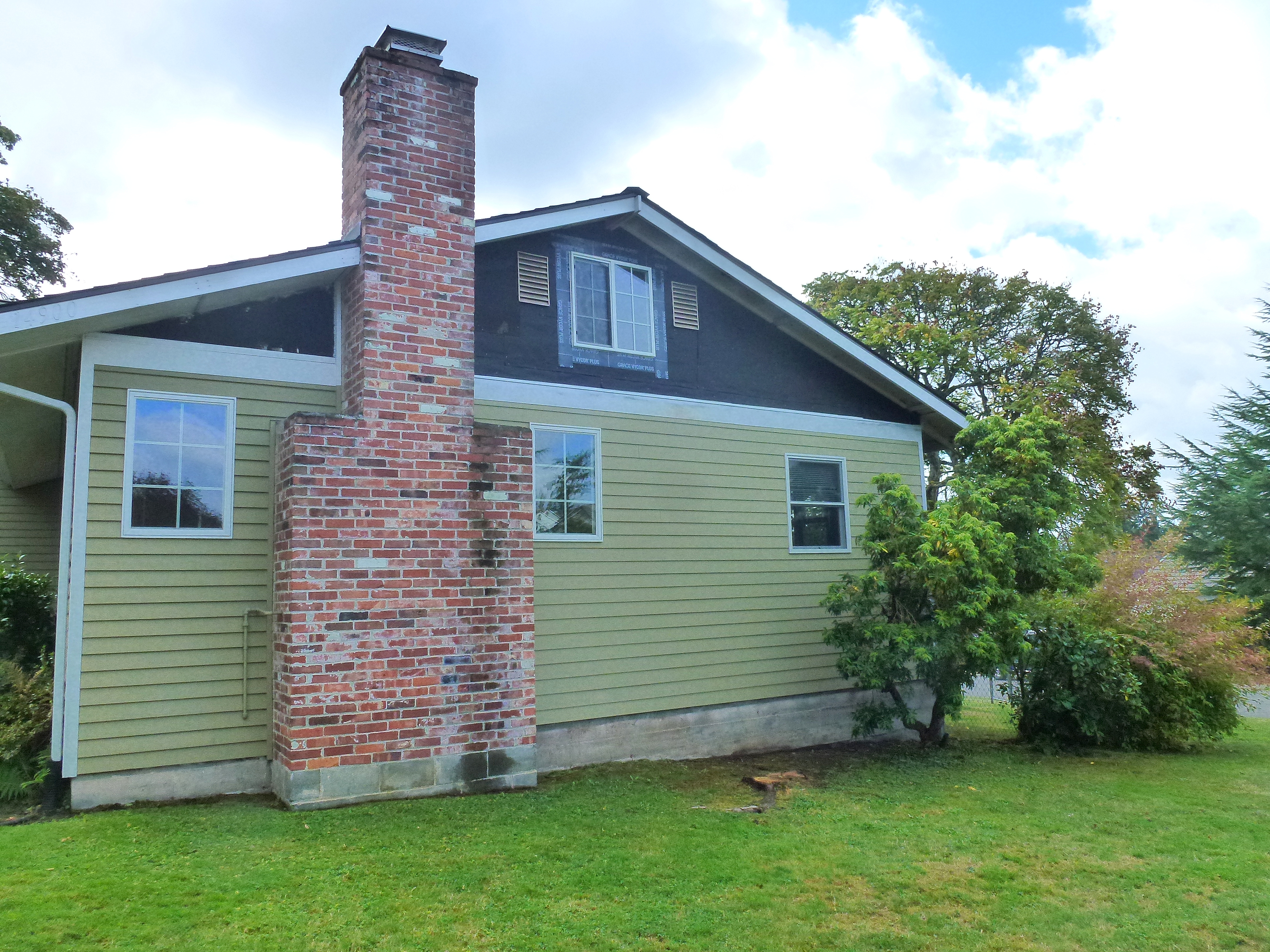 Other projects are well on their way at this old house. The siding and upper window are new as of September. Rows of cedar will finish off the top.