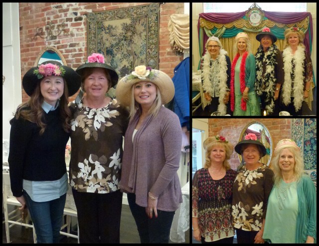 Grandma Wilma has four daughters and a son. Three of the daughters including our Laura’s mom were at the tea. One of Laura’s aunts lives in Colorado and was not in town for this regal event. Wilma’s son lives in Australia. There was a room where you could choose hats and boas to wear. My mink Fascinator kept falling off my head.