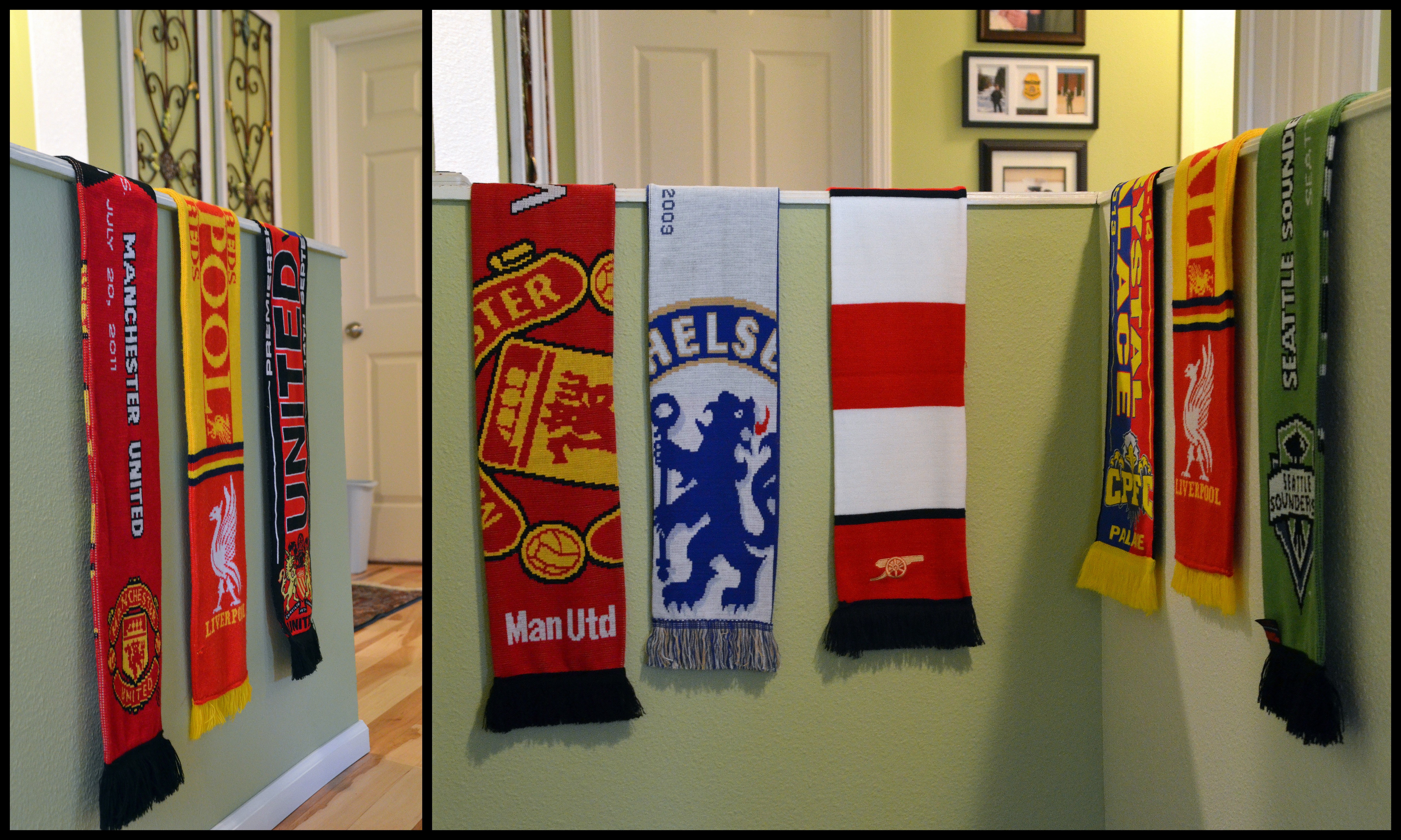 As you stepped into ye olde pub you were greeted with various scarves from English premier league futbol (soccer) teams.