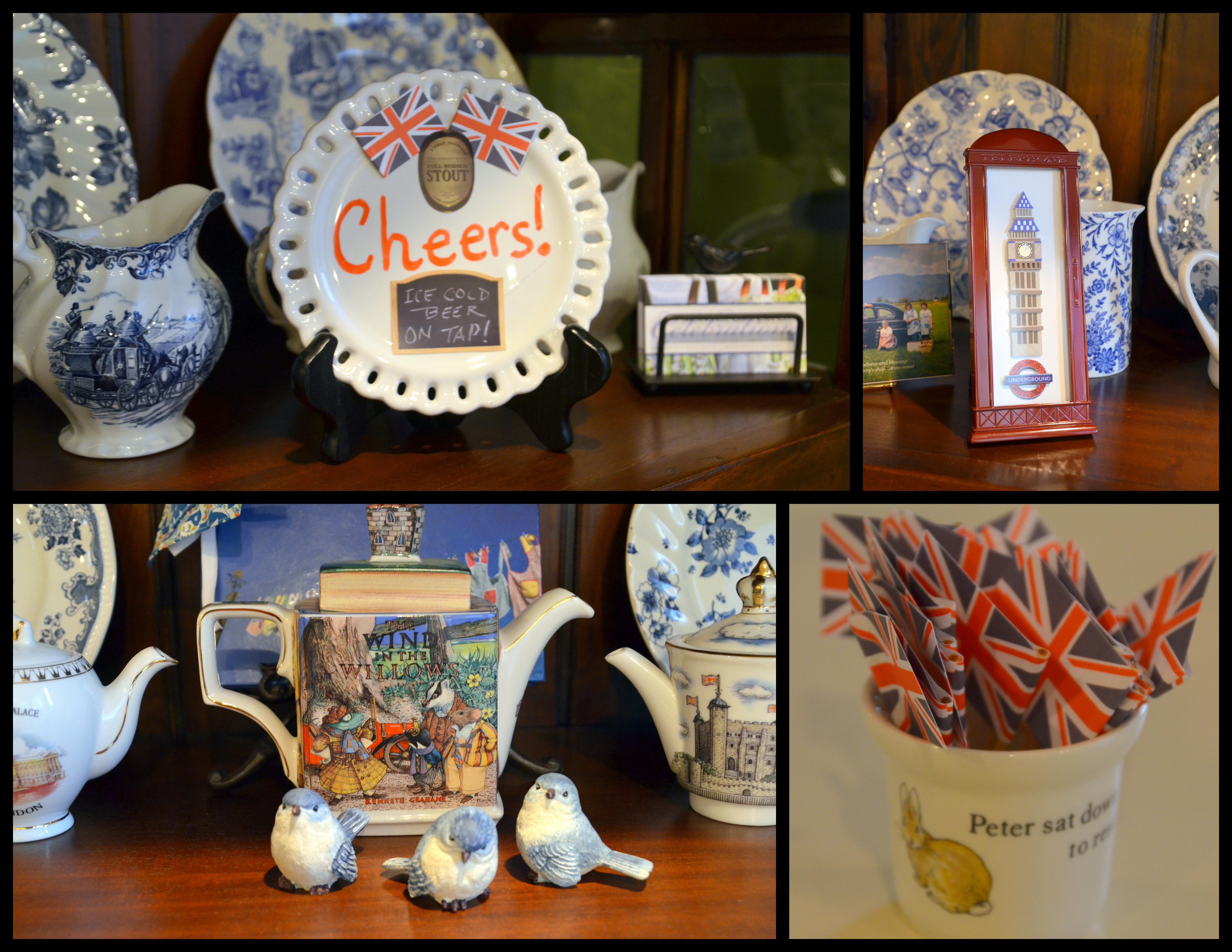 The centerpiece was filled with some items that we would see on pub tables when we were in England and some things I added. I wanted to use as much pewter as I could.