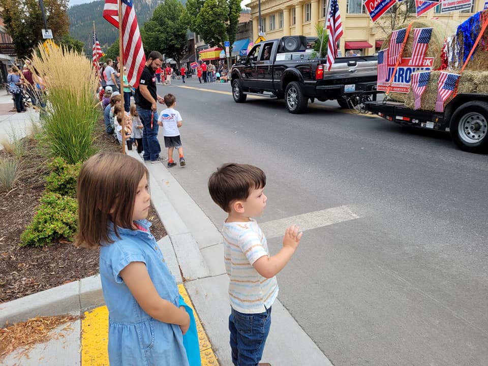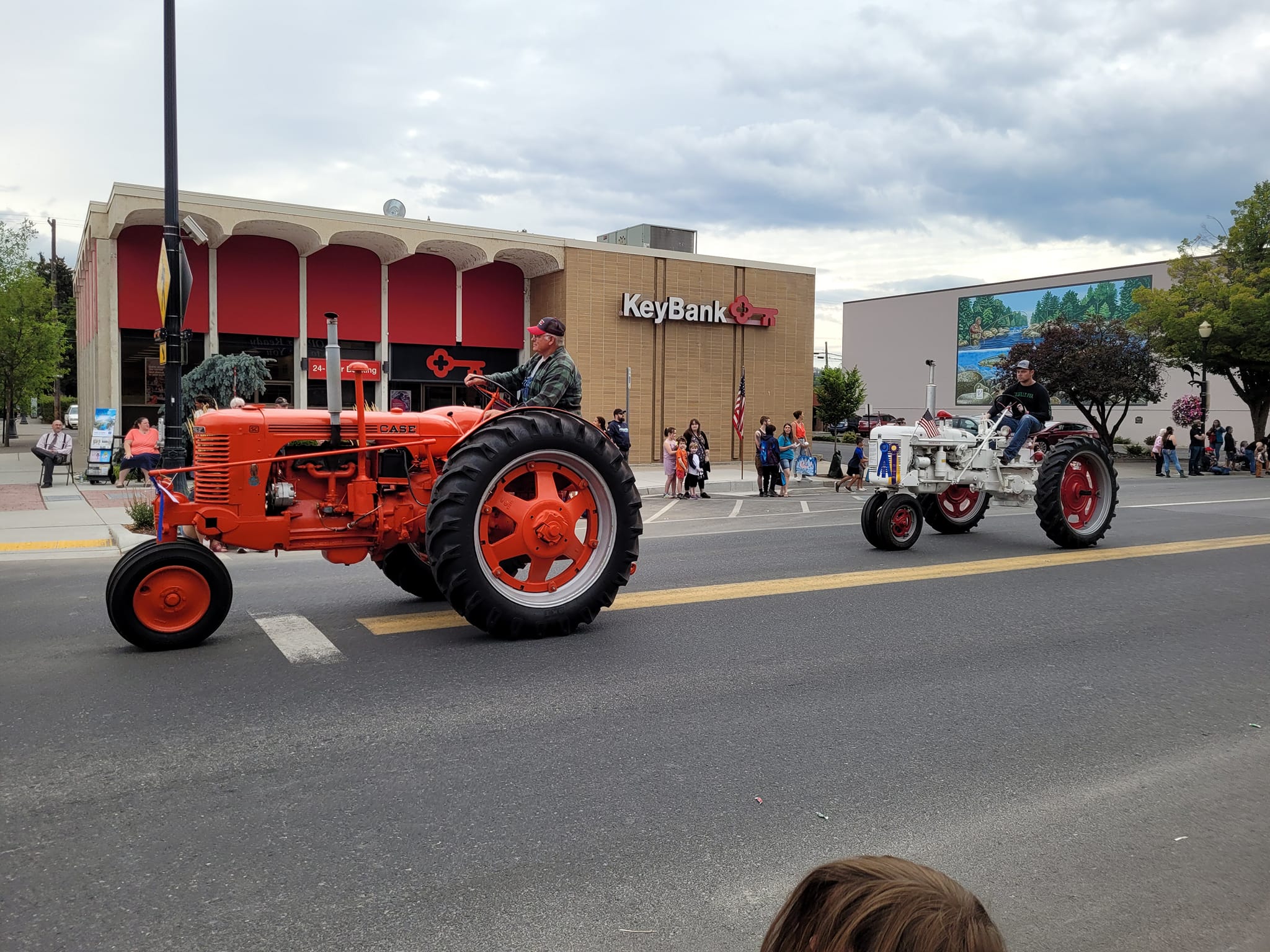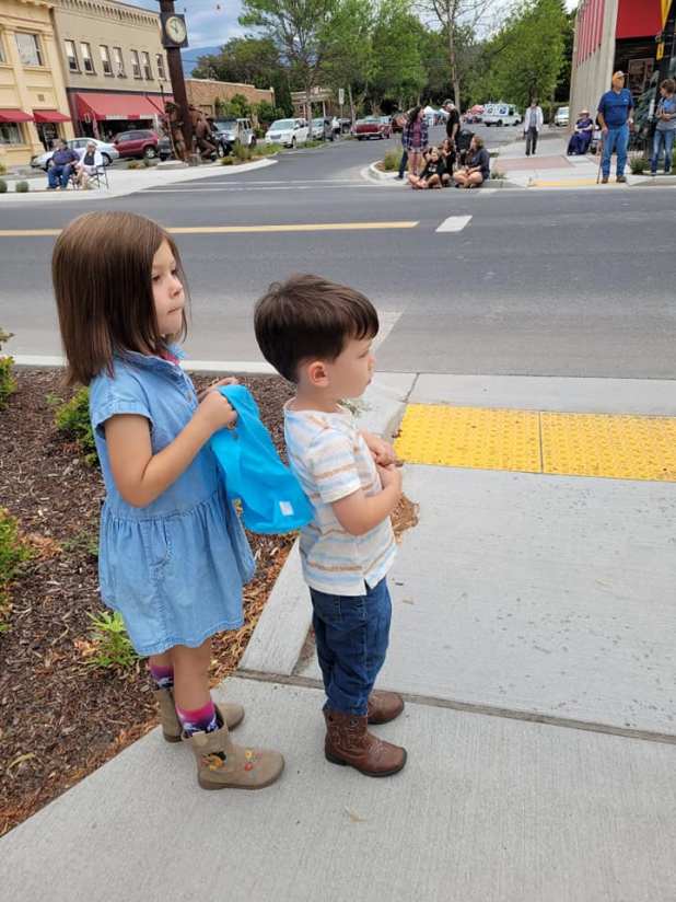 We made it to our little Country Fair Parade on Saturday morning. We were only sprinkled on and didn’t get wet…just sprinkled. ‘Every cloud has a silver lining.’ Our Grands were able to gather a bunch of candy as the different participants in the parade threw the treats to the sides of Main street. Our Fire department starts the parade off with their sirens and such and that is why Addy and JJ have their ear protection on! ‘Better Safe than Sorry’