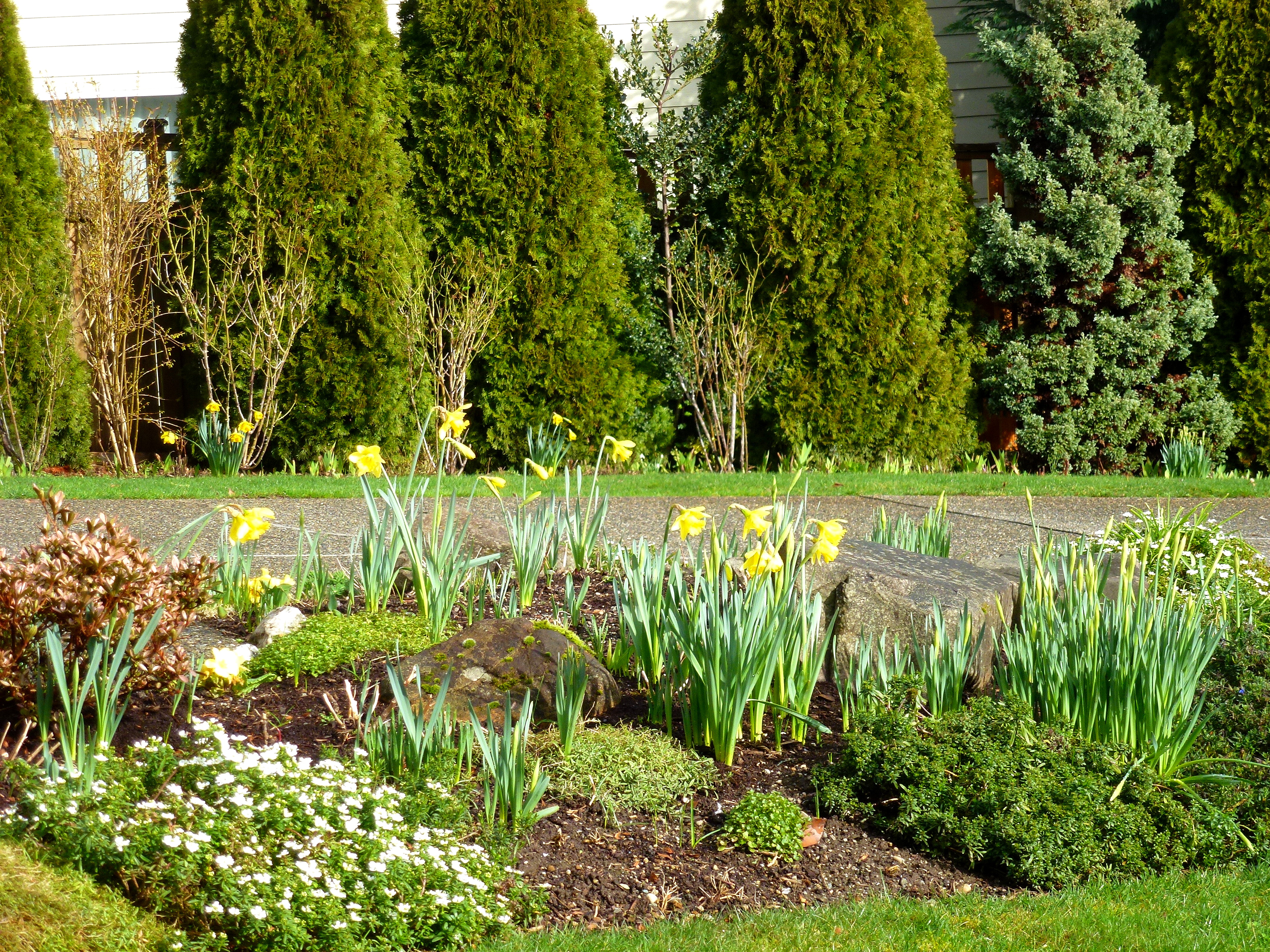 At the middle of my walk I see these beautiful rhododendrons against a wooden fence. I want to buy one of these varieties for my yard.