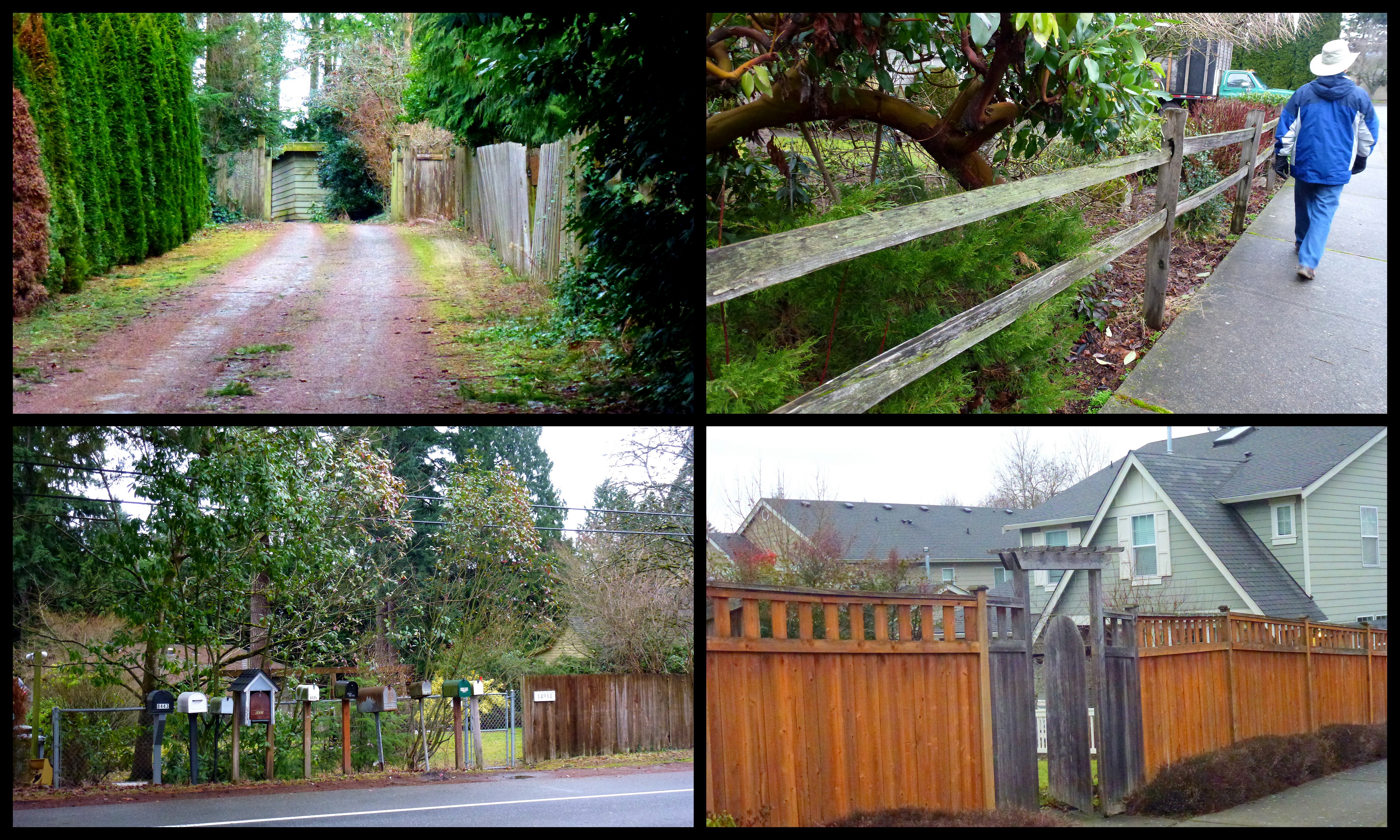 The start of my walk on this sunny morning is from the front of our home on the drive that leads out to the neighborhood. That’s our pear tree on the left at the beginning of the drive. Me and my shadow…