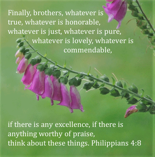 The verses before this verse are: Rejoice in the Lord always; again I will say, rejoice. Let your reasonableness be known to everyone. The Lord is at hand; do not be anxious about anything, but in everything by prayer and supplication with thanksgiving let your requests be made known to God. And the peace of God, which surpasses all understanding, will guard your hearts and minds in Christ Jesus. Philippians 4: 4-7