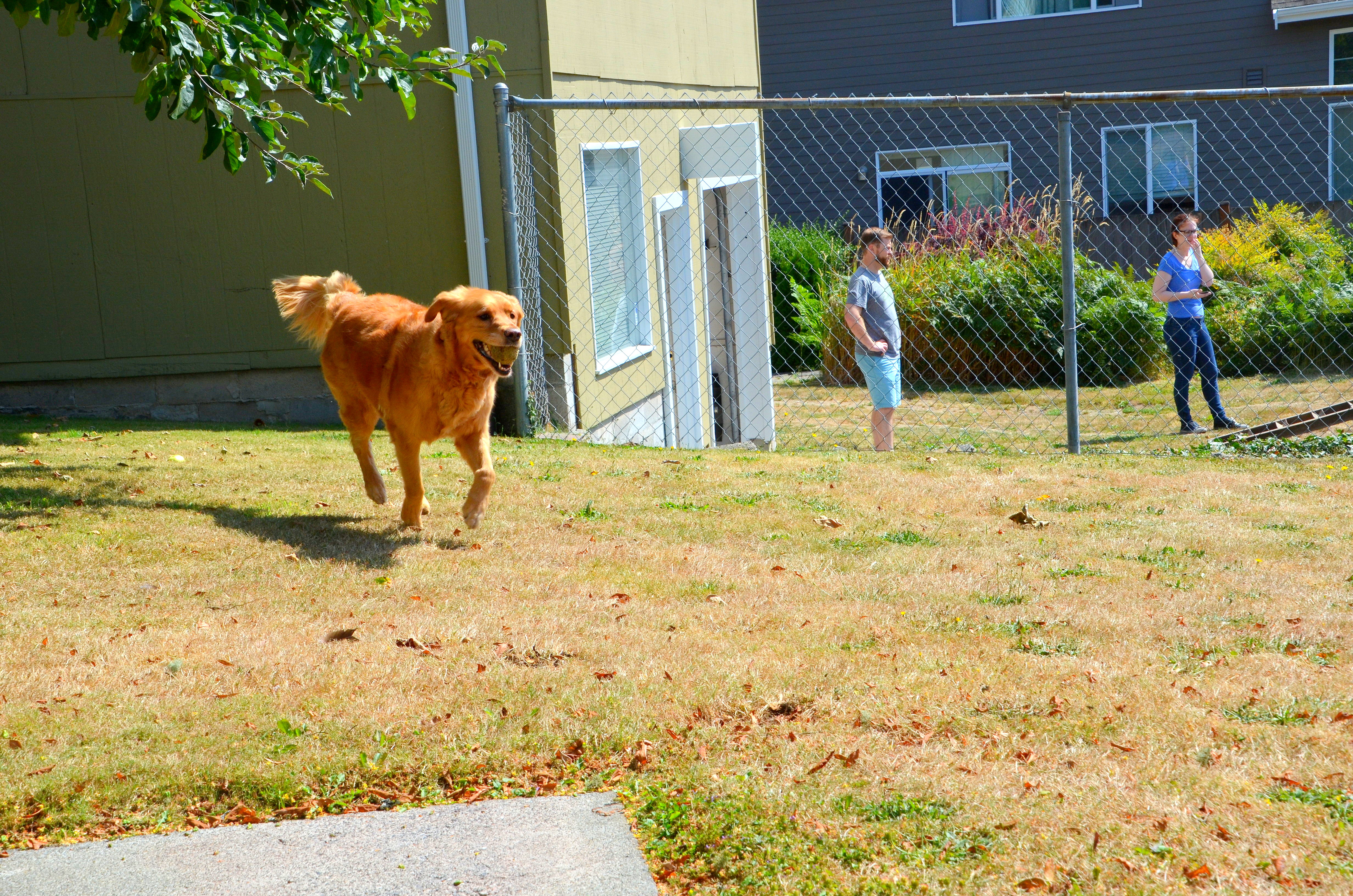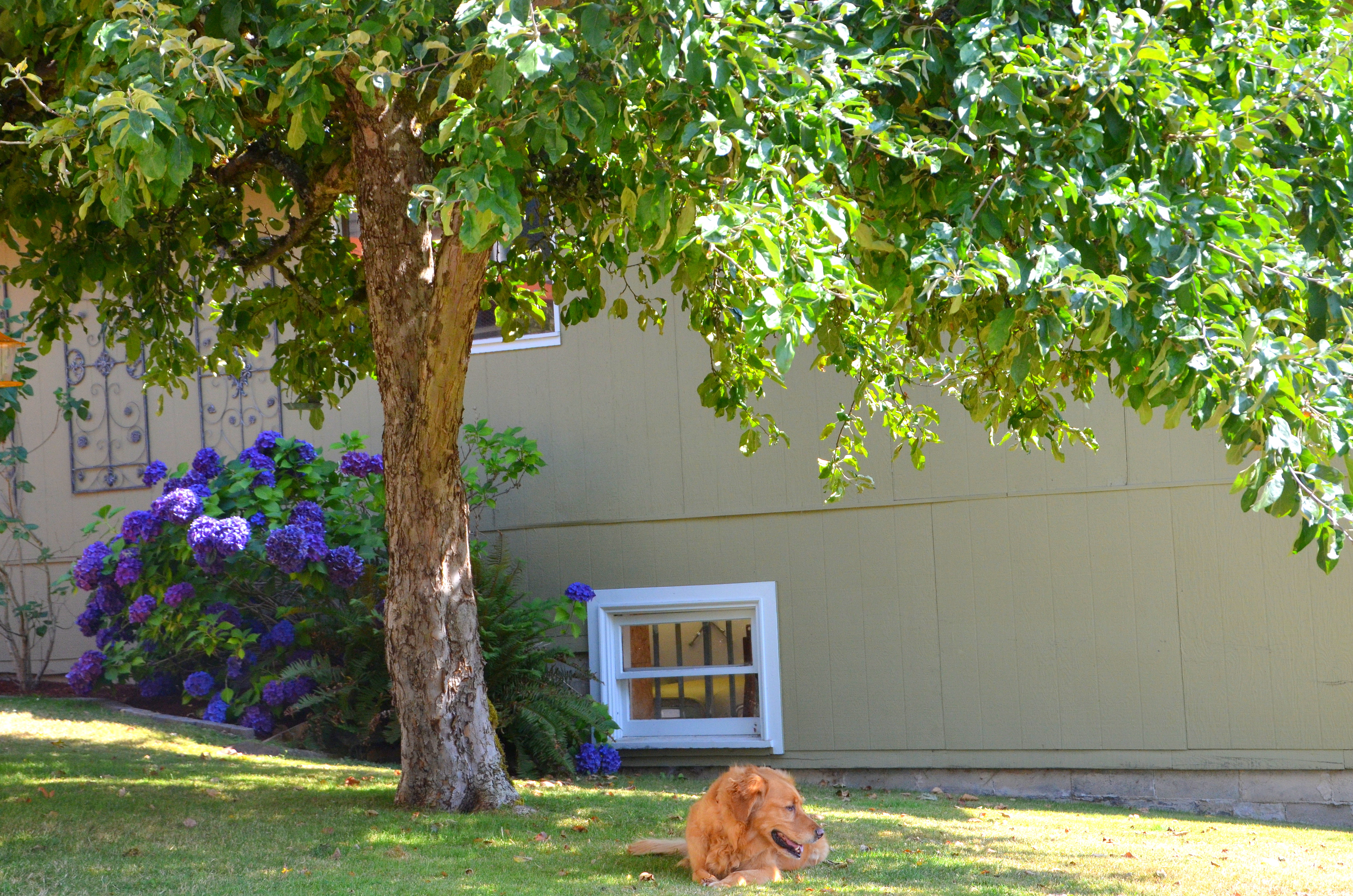 Reyna enjoyed fetch while the guys worked and then had a little rest under the apple tree.