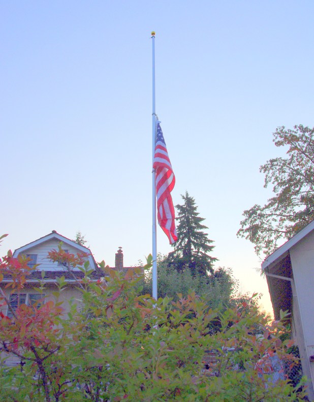 Fourteen years since that day that I will never forget. On that day I found the flag my mother-in-law was presented with at my father-in-law’s funeral at the Riverside National Cemetery in 1985. It was the only thing I could think of doing on that day where we all sat glued to the television. At the first attack I was awake alone watching T.V. in unbelief and horror. Dear was at work. Josh and Laura were at their apartment having just been married at the end of August. Dan and Katie were still at home and I woke them up to watch the news. My niece was working in Manhattan and we were all very concerned for her safety.