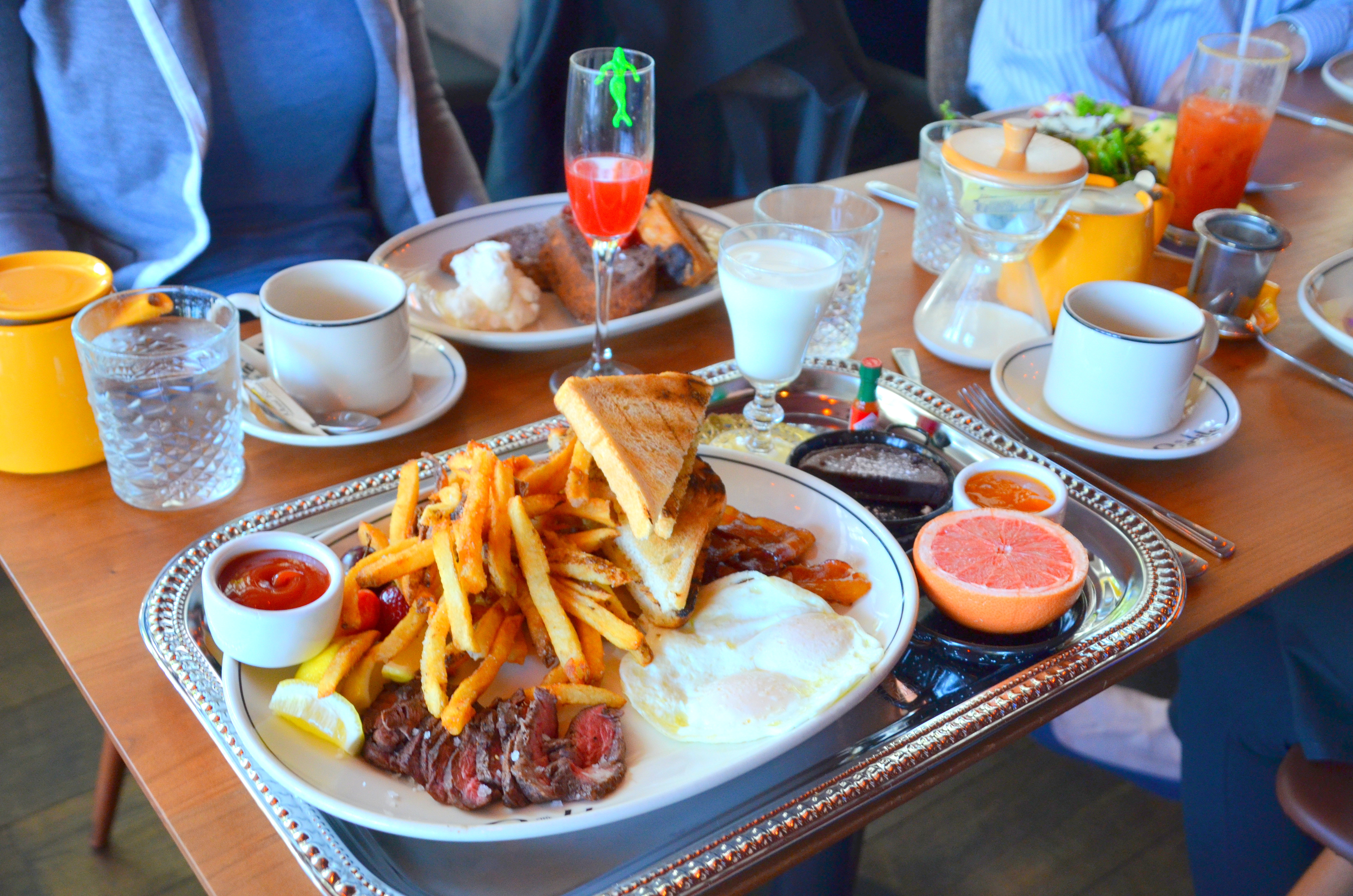 We all enjoyed our choices of Meaty breakfast, Eggs Benedict, Deep Fried French Toast and we were happy that Andrew went with the Hunter’s breakfast served on this silver platter…
