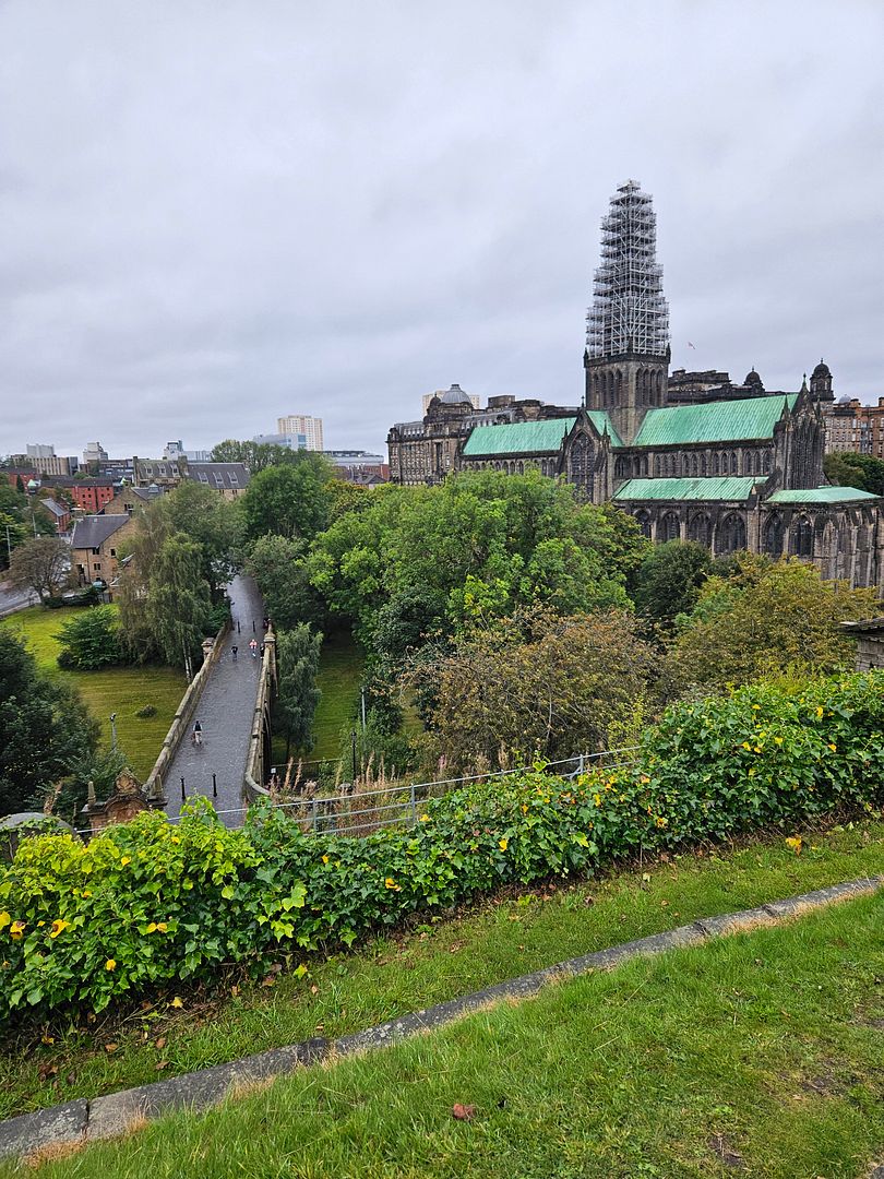 On Saturday the 14th of September after viewing the inside of Glasgow Cathedral we walked outside to improving weather and decided we shouldn’t miss the hike up to the Necropolis to view the John Knox Memorial.