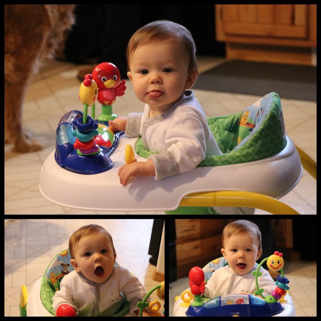 She’s standing a lot more without holding on and still only takes a couple of steps at a time. Walking isn’t far off.