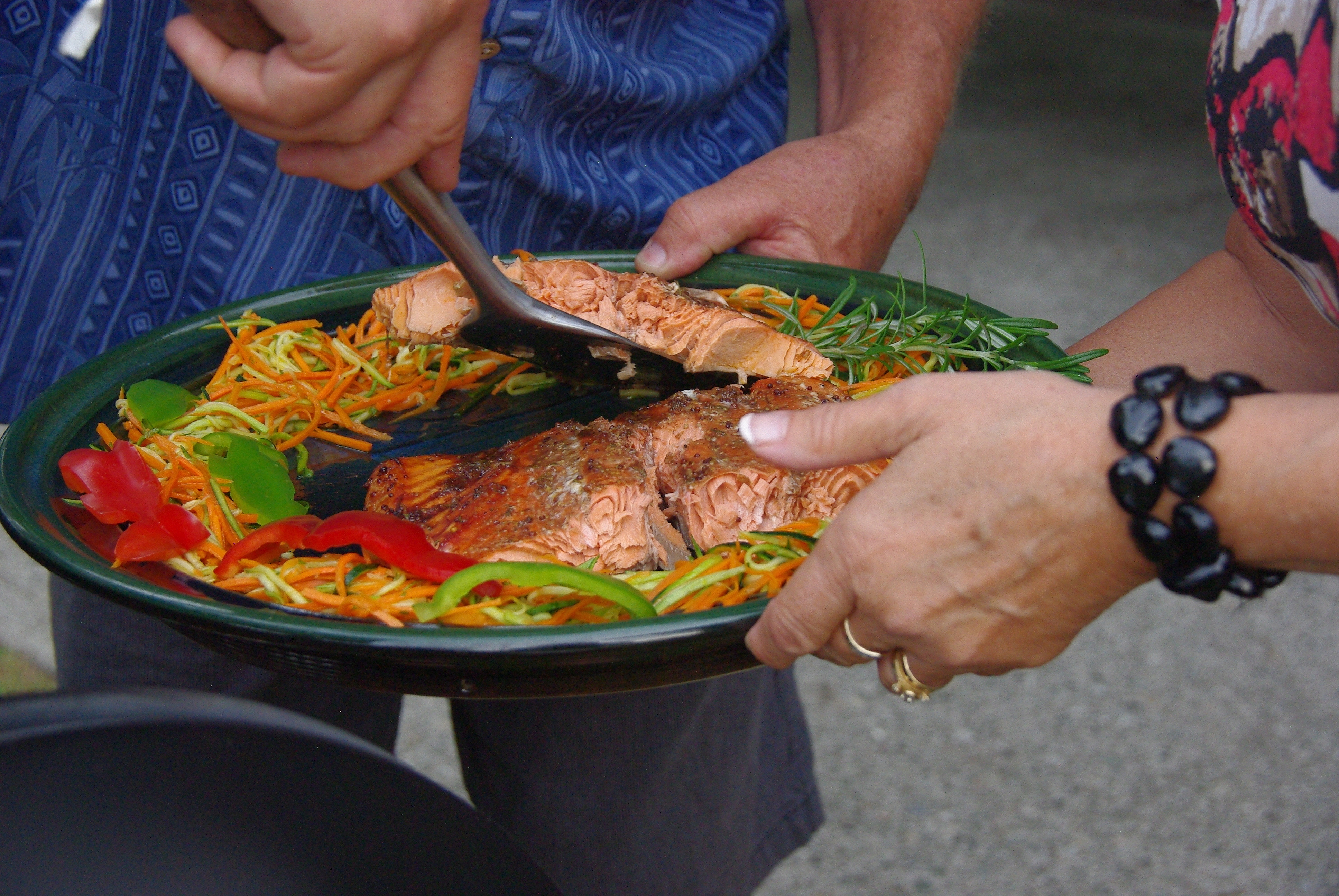 Bev prepared the marinade for the salmon that her husband Harv caught and then prepared on his smoker grill for us. So thankful for these generous and helpful hands that are always ready to serve us.