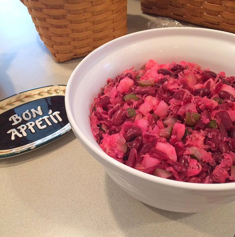 I posted this Russian Beet salad, Vinegrette,  that was a family favorite growing up on Monday. You can find the recipe at Mennonite Girls can Cook by clicking here.