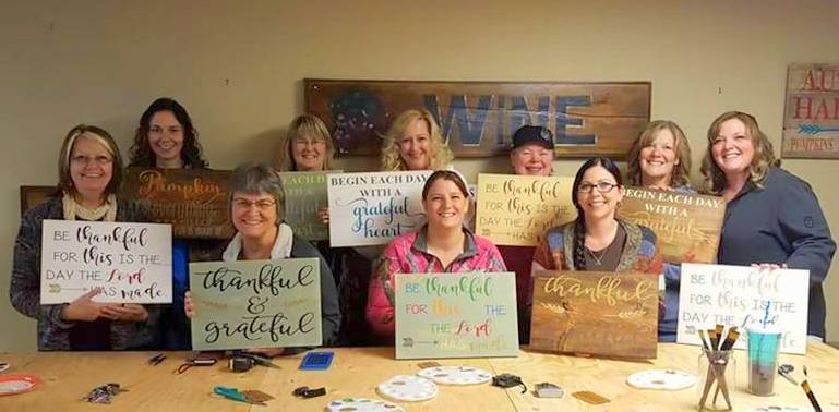 We got to choose the stencil with a saying we wanted to add to our board. The equipment was all provided along with great spaces to create. So many paint colors to choose from. The hostesses went around helping us and giving us tips.