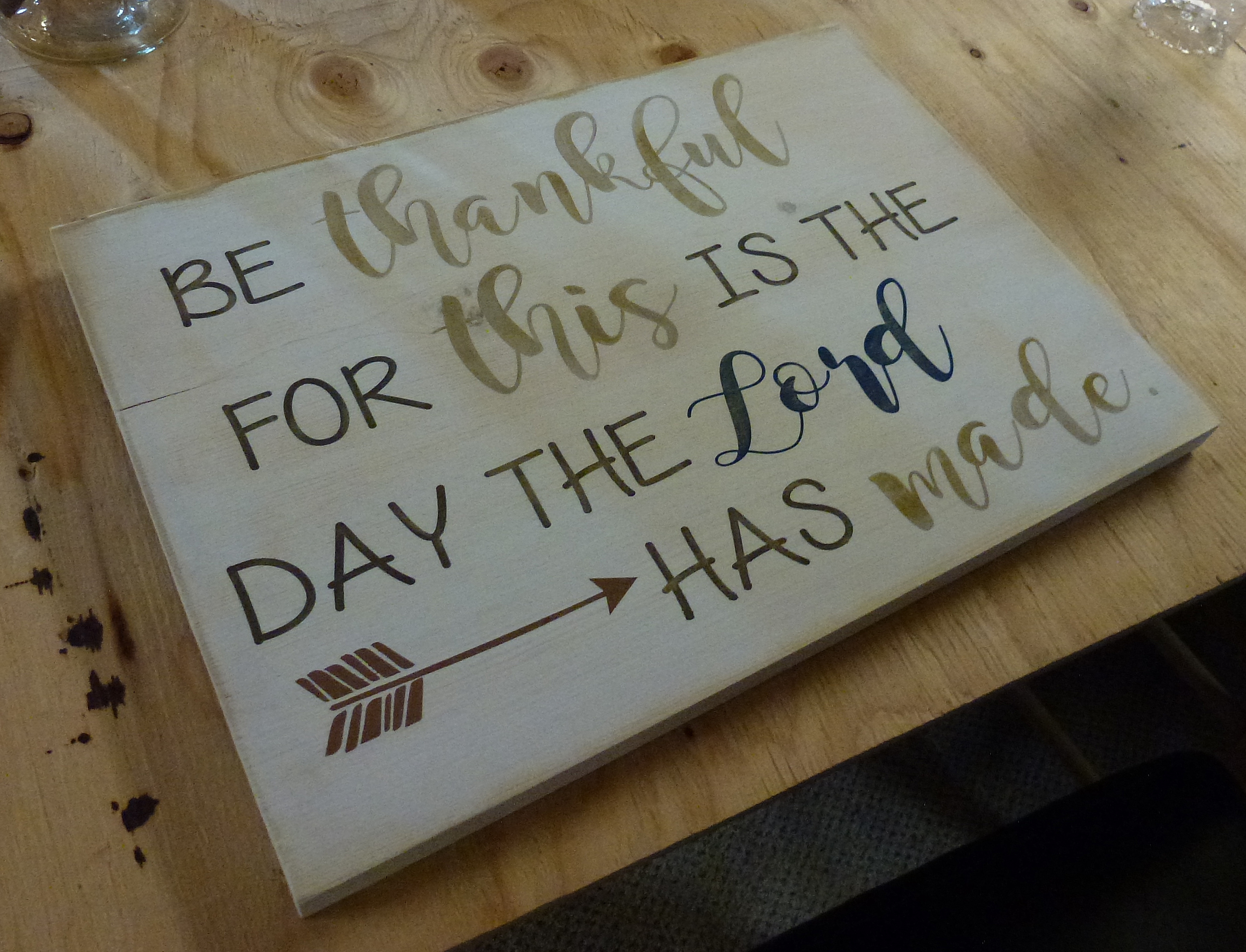 There was a little glare on the photo of this one which is our daughter in laws. Mine is the one at the top of this post that says thankful & Grateful.