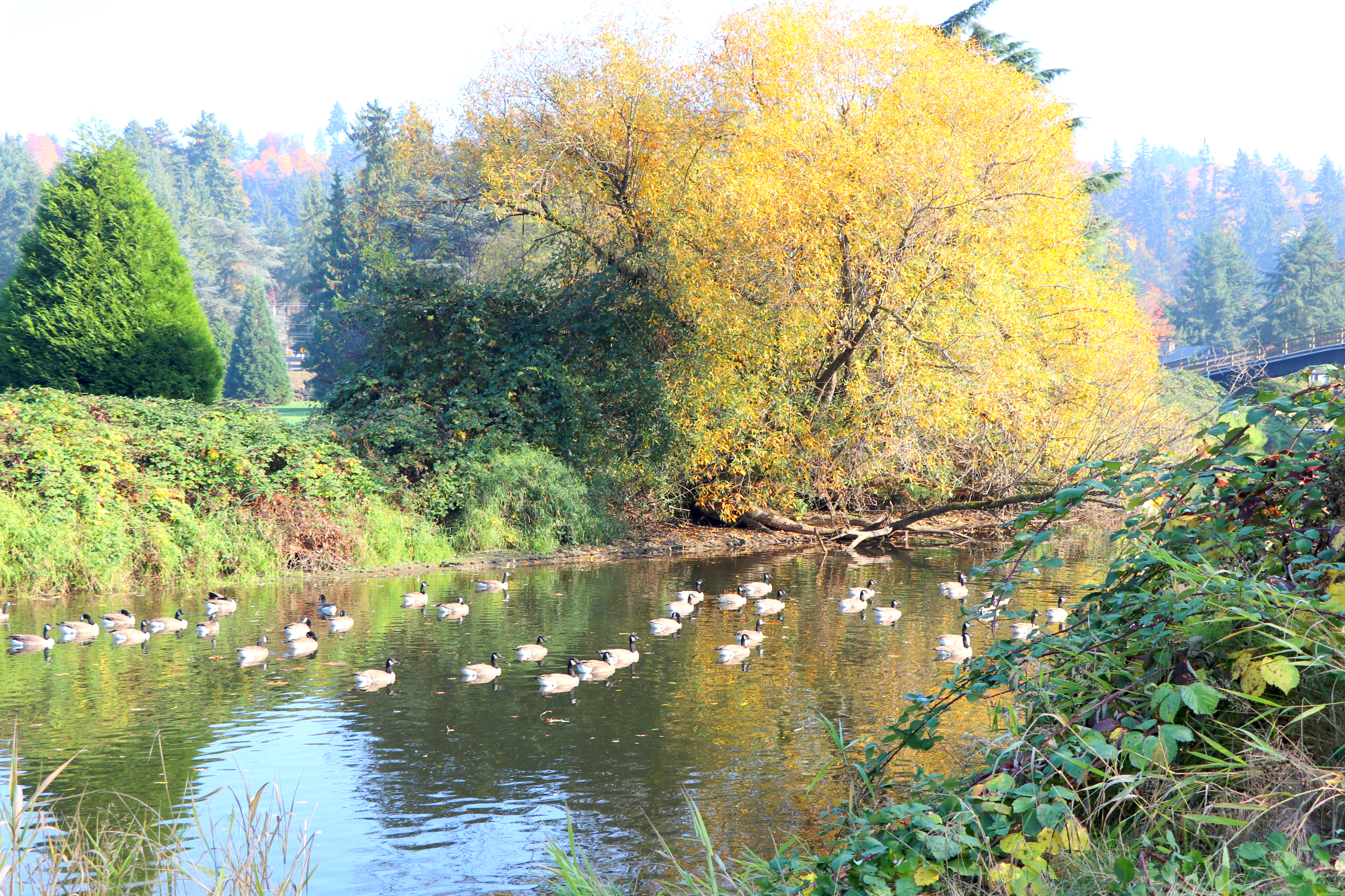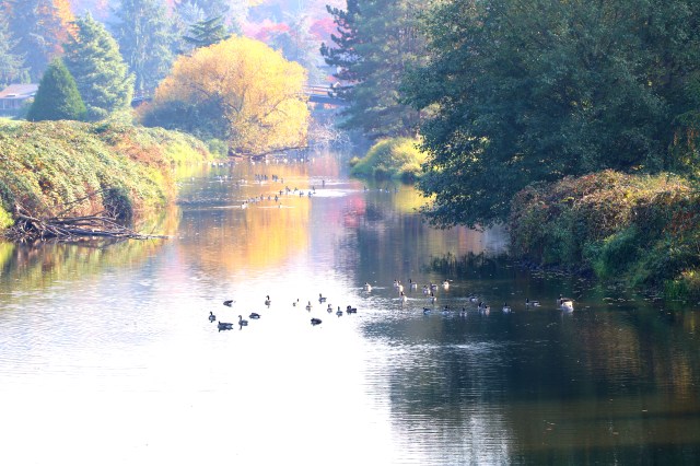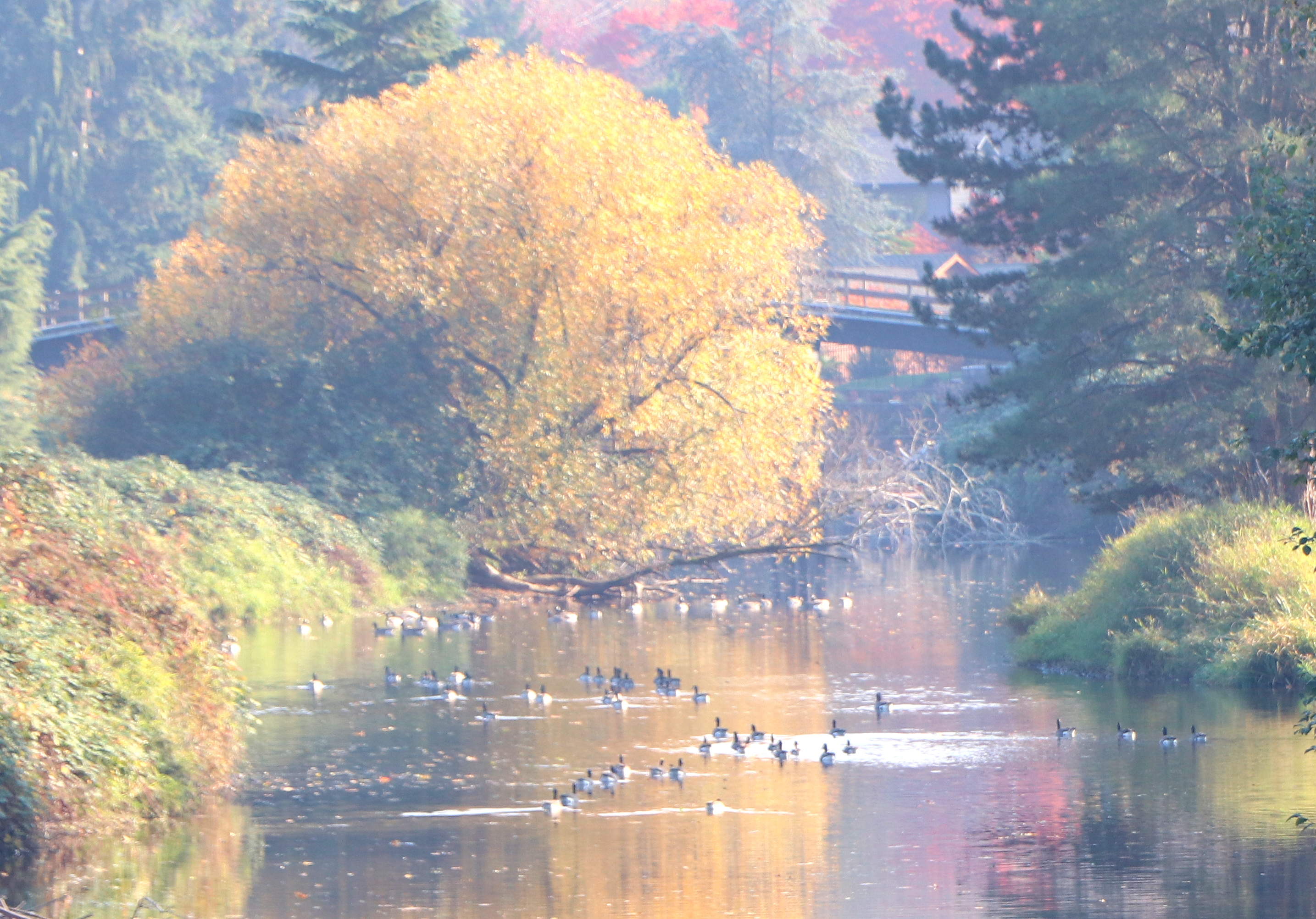 The photos above of the Canadian Geese on the Sammamish River in Bothell were taken back on October 29th while we walked the Wayne Golf course.