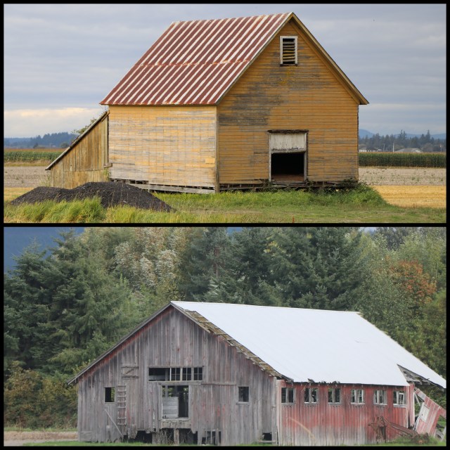 Before I forget about these leftover photos of barns and critters I’m posting them for Eileen’s Saturday Critters and Tom’s Barn Collective. The two farm structures above were taken on some back roads October 6th in Skagit County.
