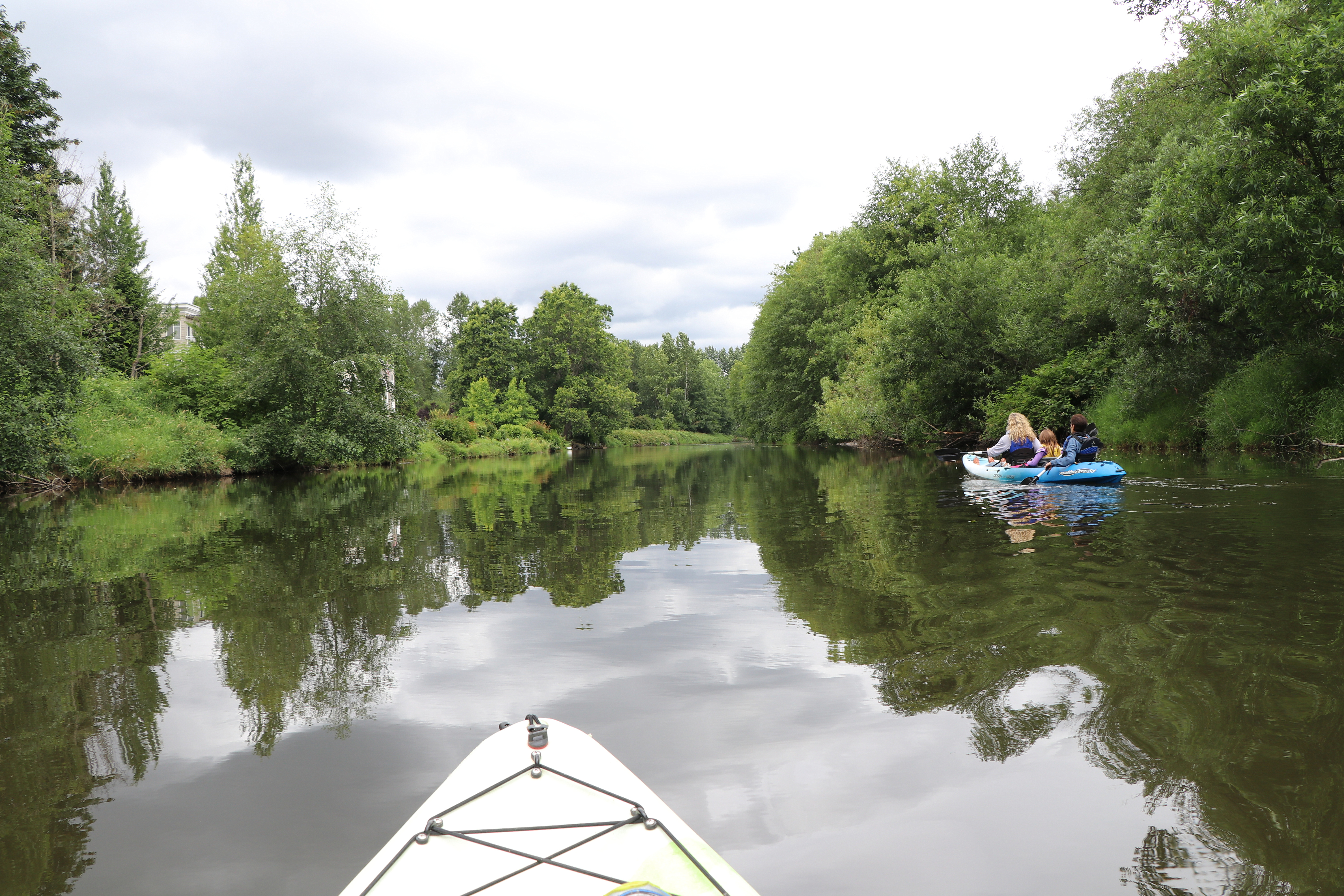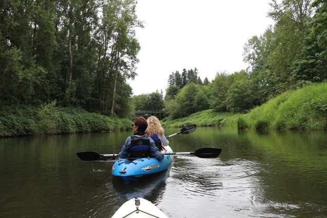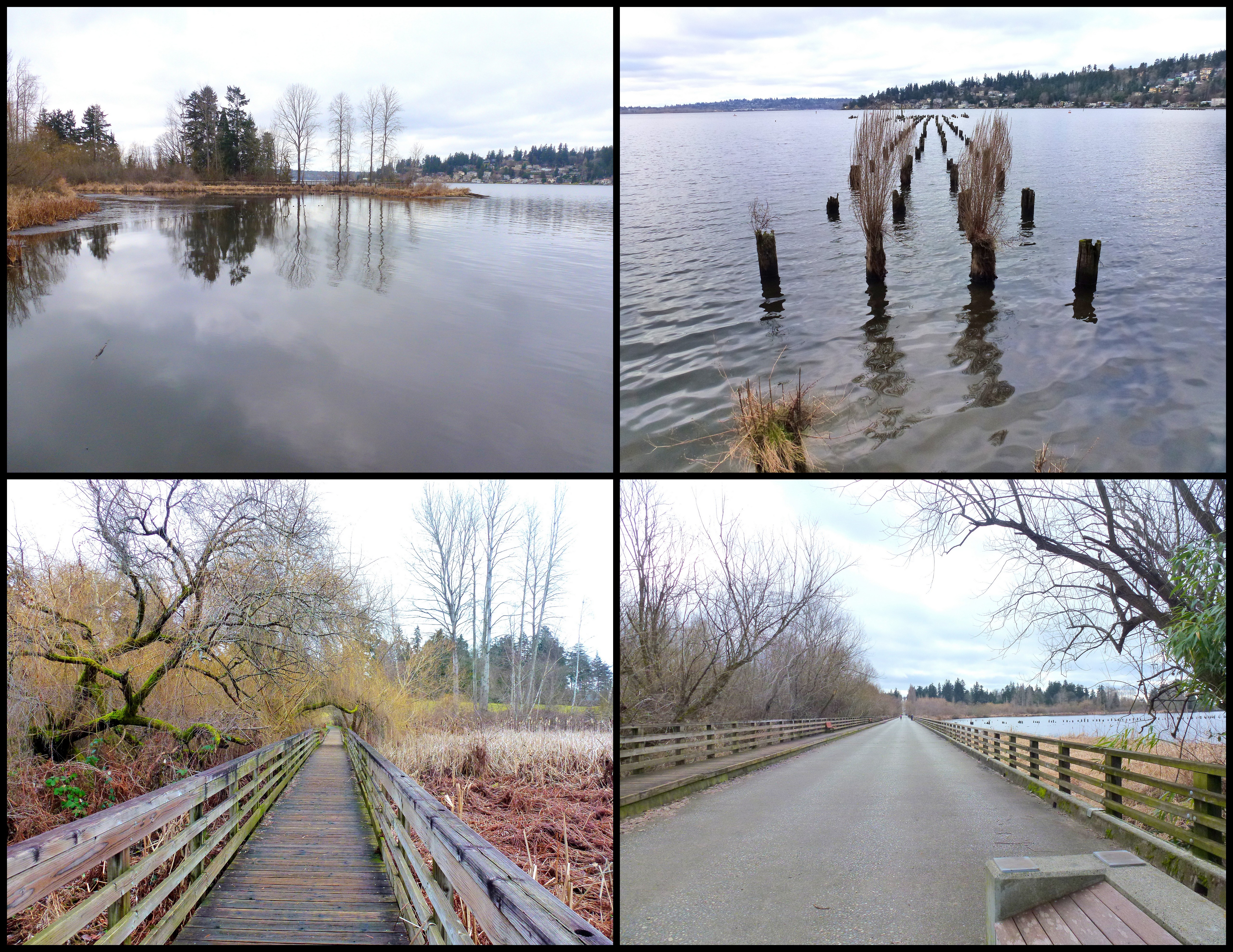 There’s an old public golf course along the Burke Gilman Trail that the city of Bothell sold off and it is sitting and waiting for developers to change it’s landscape. There was lots of controversy over this sale and I’m sure the folks whose homes have enjoyed the green views are disappointed. In the interim they are allowing the public to walk on the course. We enjoyed our first time doing this last Sunday. The many hazards on the course were left there by Canadian Geese, wink wink.