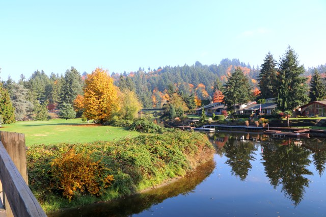 There’s an old public golf course along the Burke Gilman Trail that the city of Bothell sold off and it is sitting and waiting for developers to change it’s landscape. There was lots of controversy over this sale and I’m sure the folks whose homes have enjoyed the green views are disappointed. In the interim they are allowing the public to walk on the course. We enjoyed our first time doing this last Sunday. The many hazards on the course were left there by Canadian Geese, wink wink.