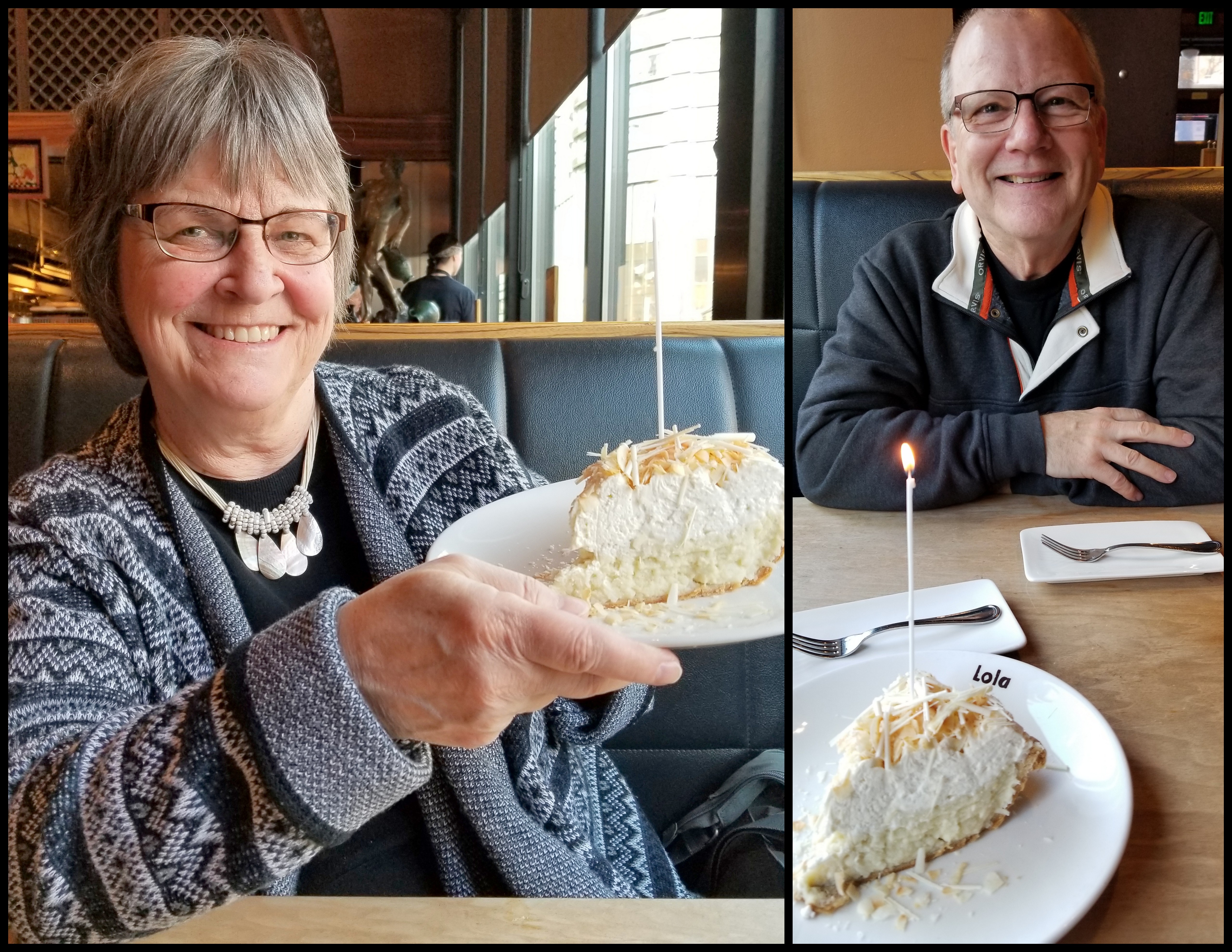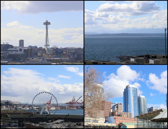 We settled our bill at Cutters with a gift card Katie and Andrew had given us for a Christmas gift. Then we enjoyed the views of the waterfront before trekking up the 5 blocks to Lola’s Restaurant on 4th and Virginia. We chose this Tom Douglas restaurant over his other establishments because of the variety of lamb dishes they offer. I had the Lamb Shoulder Tangine and it was delicious. Dear got the Lamb kebabs. The red you see on my dish are a generous topping of saffron threads. Our beet starter and the rice dish loaded with pistachios and Greek olives were delicious, too.