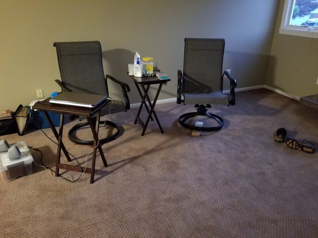 Besides our mattress (no box springs) these are the only furnishings left in our home for us to sit on. No TV but we still have internet. Today, Sunday, we went to church and said our goodbyes. We went out for breakfast after church since we have packed up all our dishes, etc. After breakfast we put our trailer on “offer up” and immediately got several inquiries on it and sold it within 2 hours. The couple who came to pick up the trailer also took two large “free” items we had on the curb, win win. Less items to take to the dump. We gave a few potted plants and patio decor to our neighbors. Then we made a trip to son #1’s to sit on a couch and watch the Sounders game. We also transported our two top hat blueberry bushes to their patio. We left one of our cars there and came back home via a new hamburger joint in Bothell. We’ll have one more sleep at this old house and then we’ll transfer our temporary residence to son #1’s home.