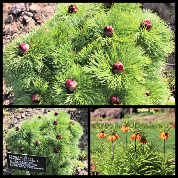 Have you ever seen a Fernleaf Peony? Such an interesting plant. The crowned Lilies were fun, too. (Fritillaria Imperialis)