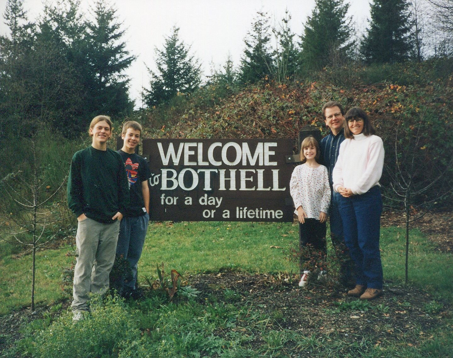 This was the classic Bothell sign we stopped on the side of the road to climb up to in the 90’s and take this shot for our Christmas photo. Since then a new college has been built on part of this site and the sign was removed.
