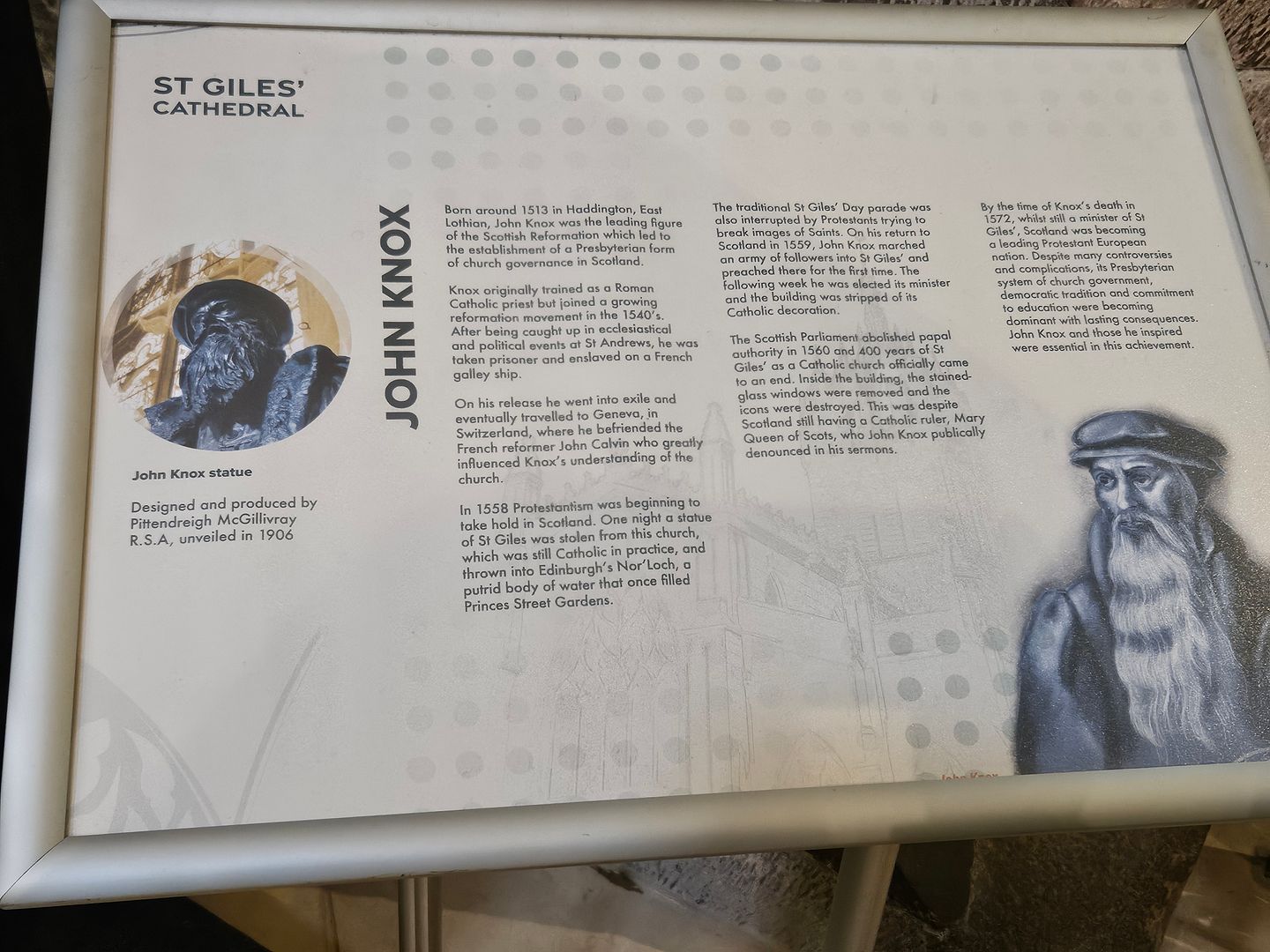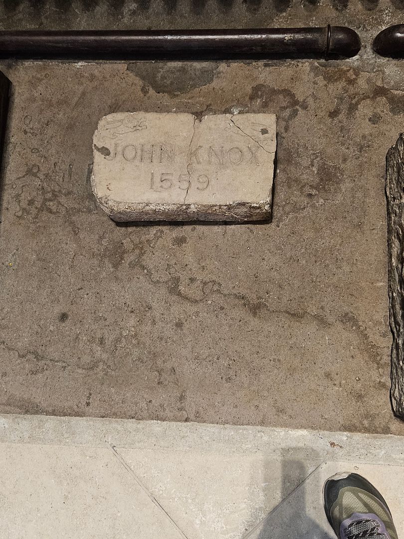 The Scottish Reformation leader’s grave was paved over and is now a parking lot. The stone inscription reads;